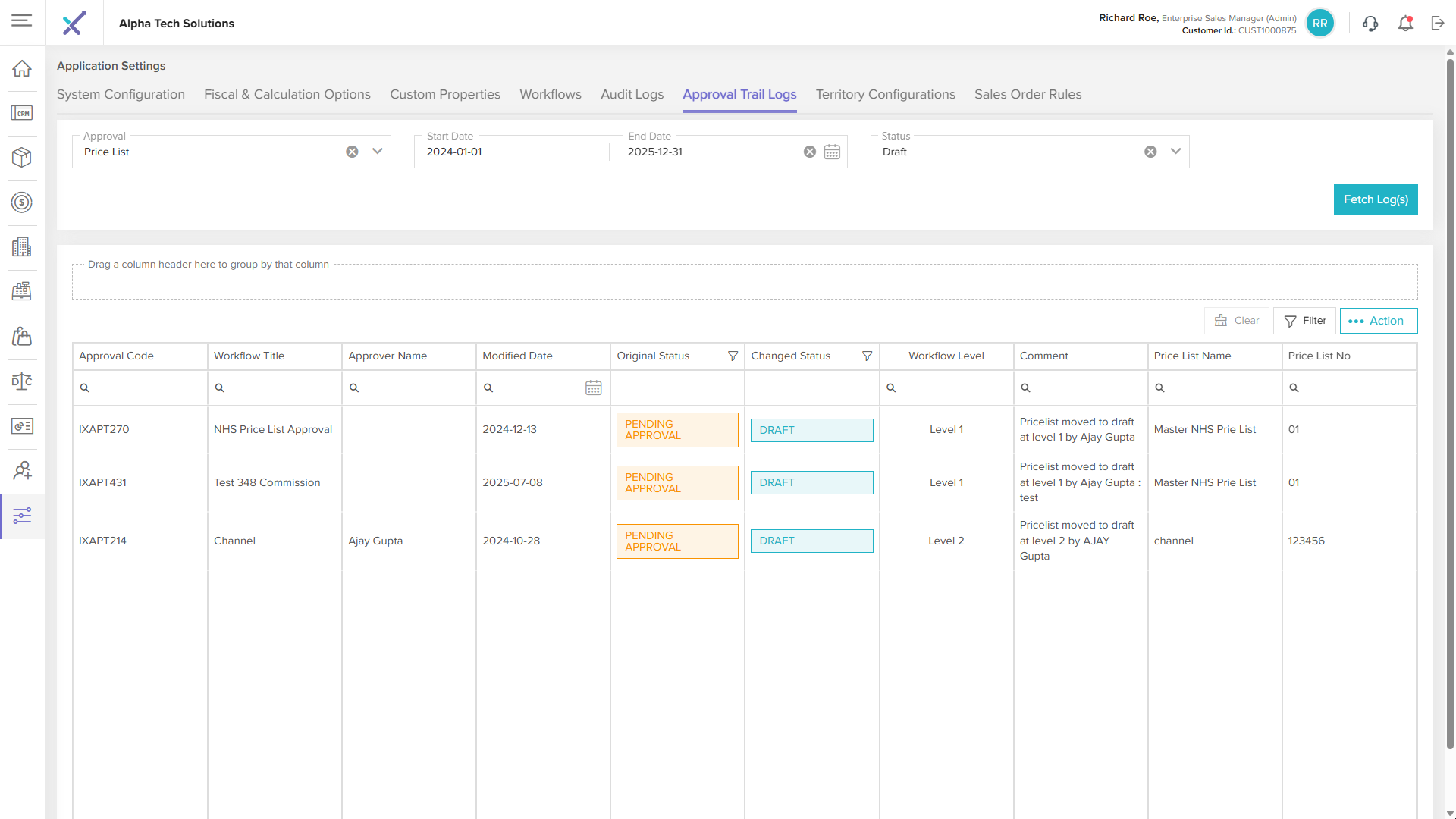 Audit Logs Audit Logs Page View Audit Records Step 1: Click the Dropdown menu to select an entity from the list, or use the Search bar to find a specific entity Once selected, the system will display the latest 100 audit records, sorted in descending ...