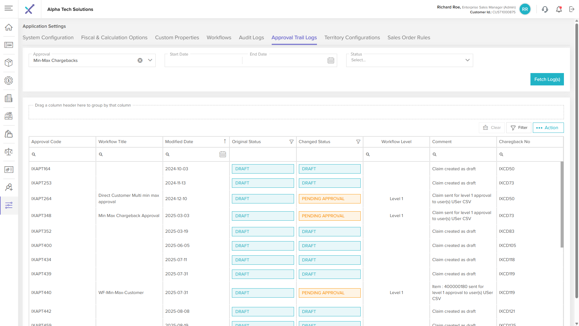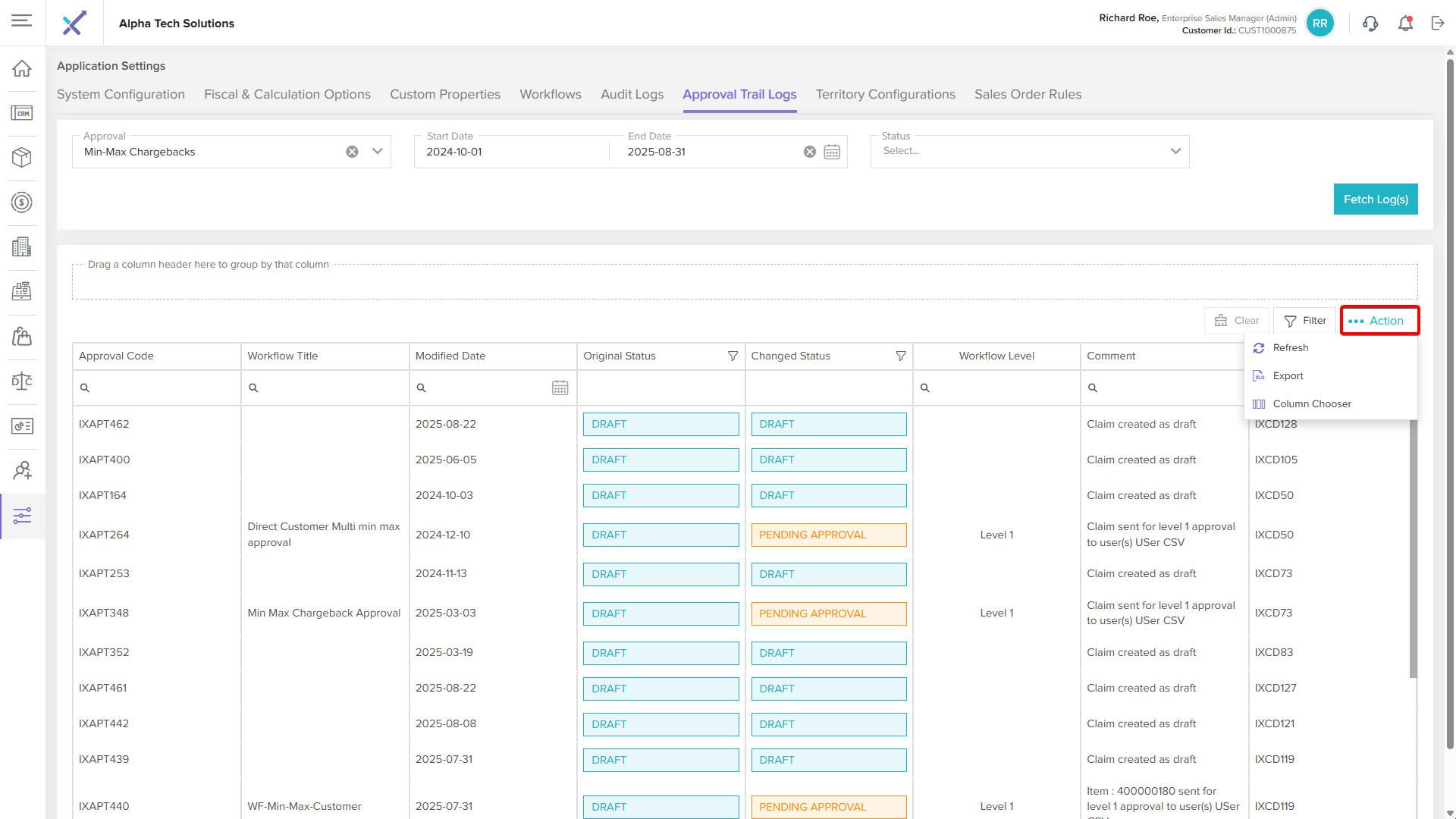 Workflows Workflows Listing Workflow Creation Step 1: Click on Action Step 2: Select Add New Workflow Type Approval Workflow Doc Type: End User Chargeback Claim Doc Type: Chargeback Claim Doc Type: Min-Max Chargeback Override Doc Type: Min-Max ...