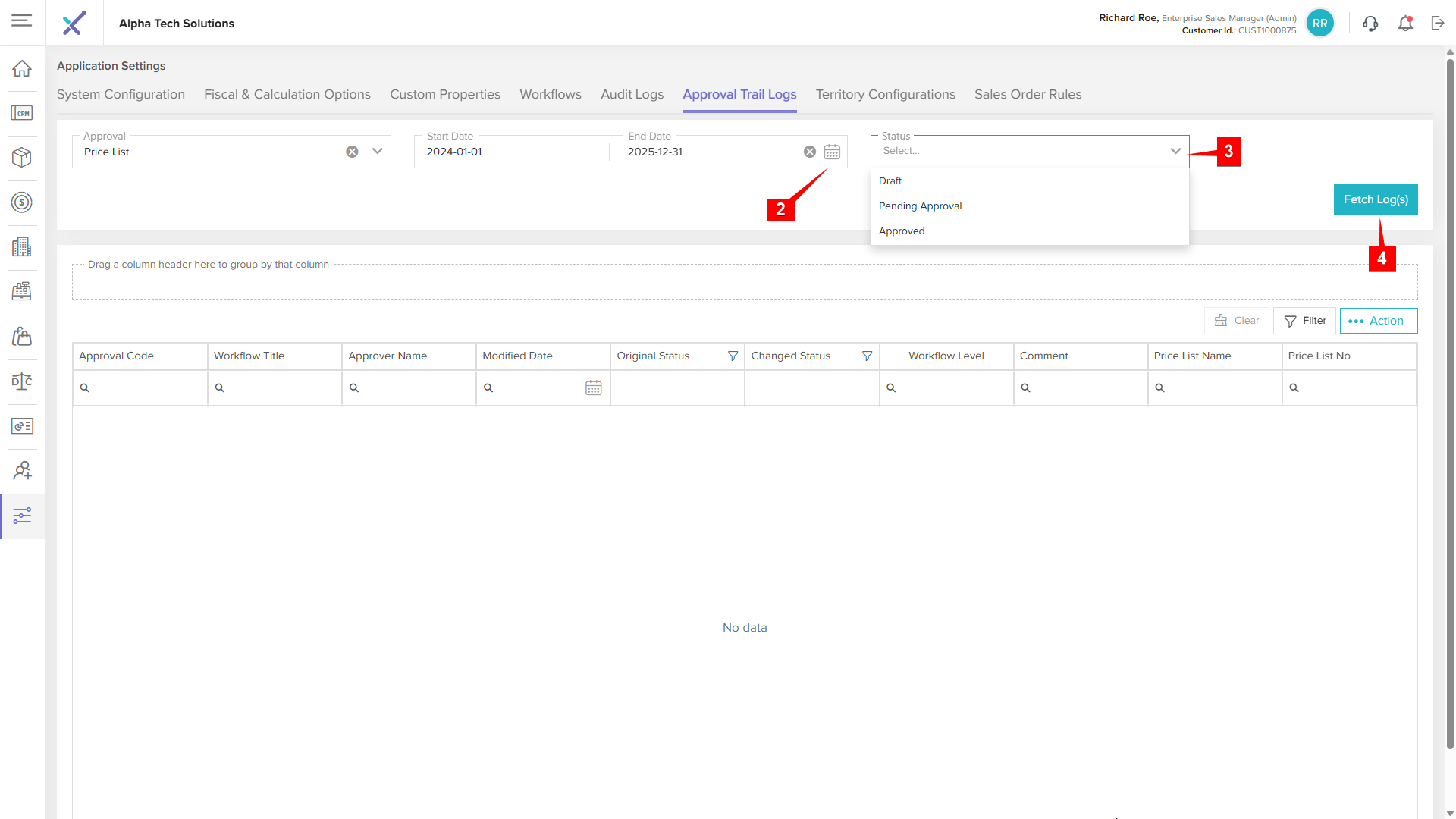 Step 3: Use the Status Dropdown to choose a specific approval status (e.g., Pending, Approved, Rejected).