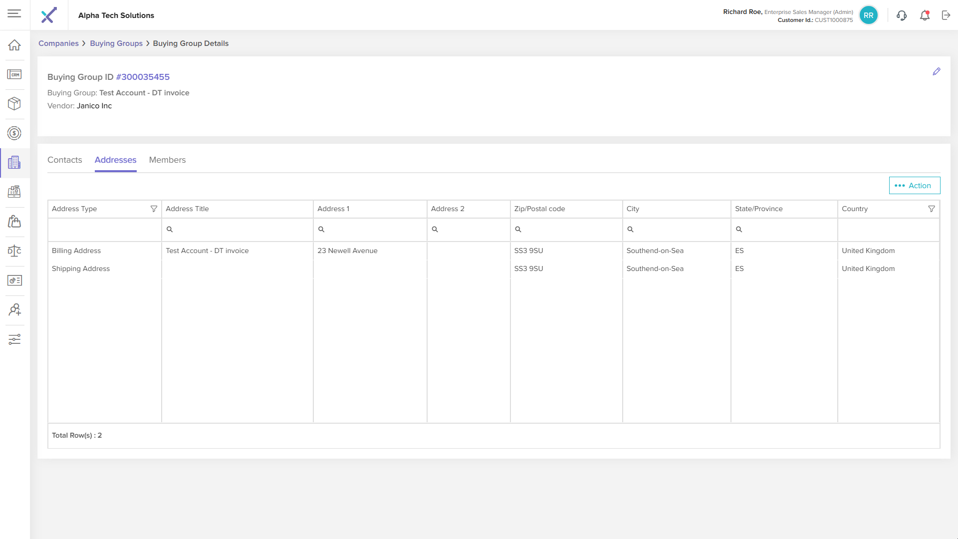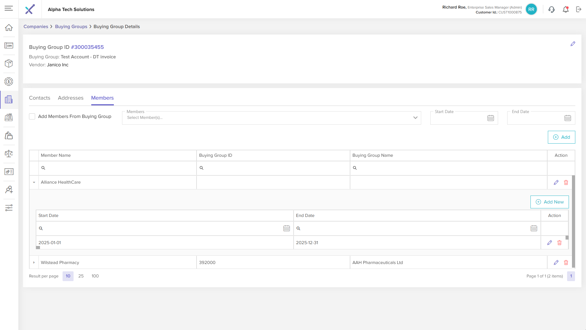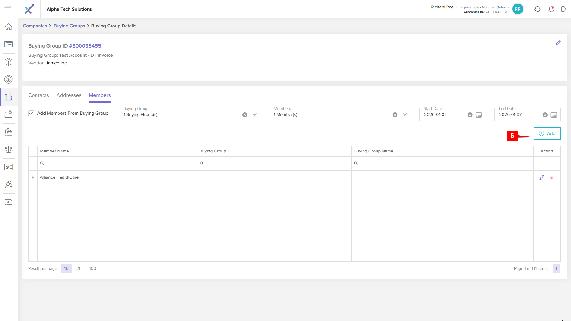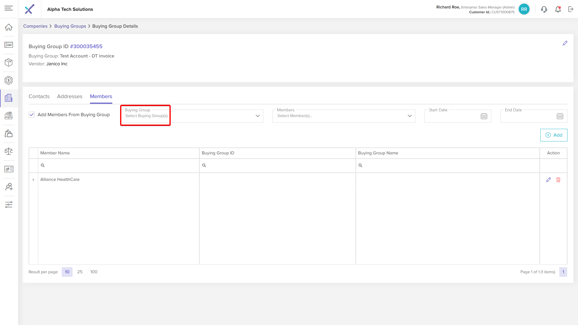 Click anywhere on a buying group row in the listing table to open the Buying Group Details page