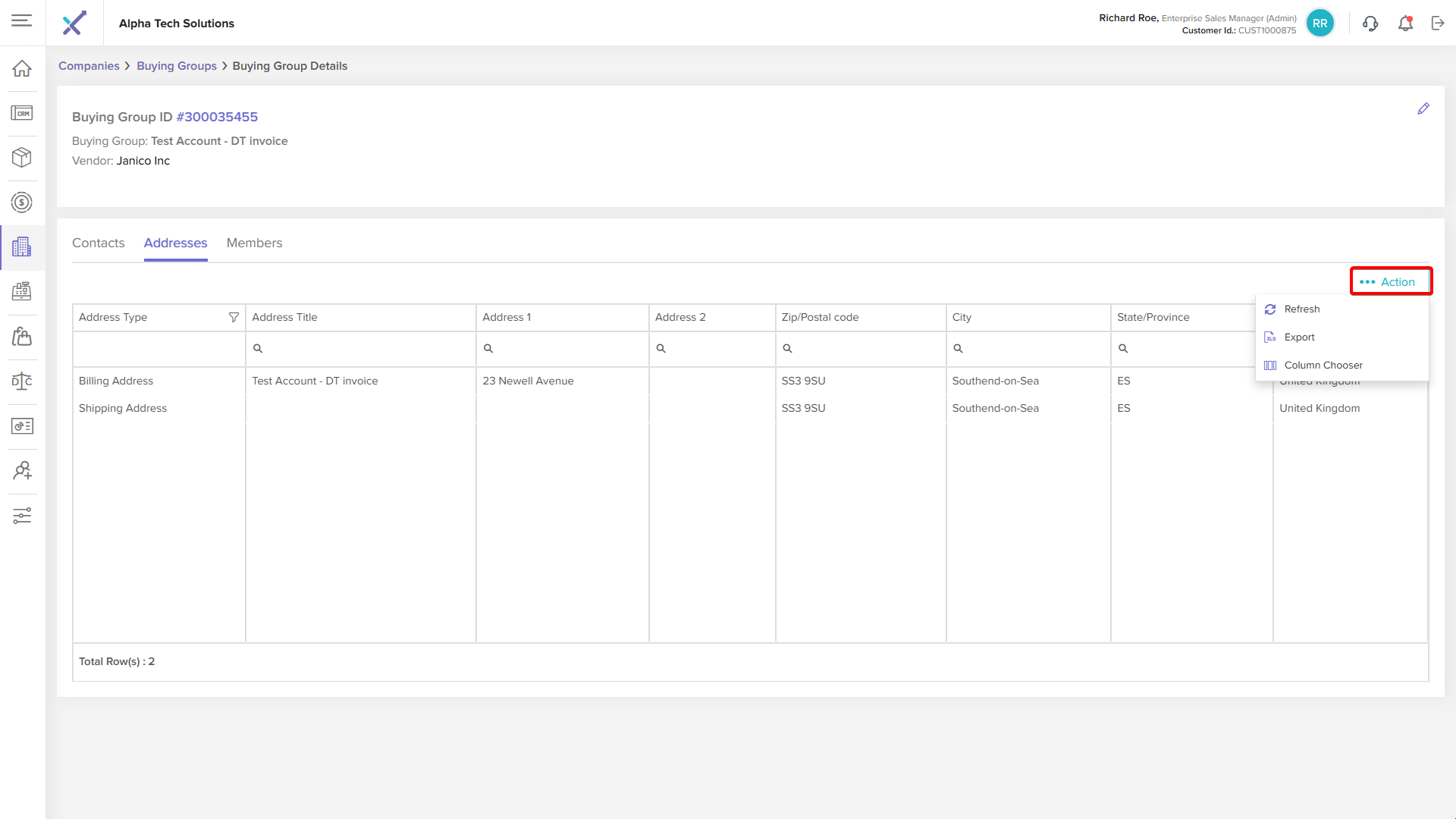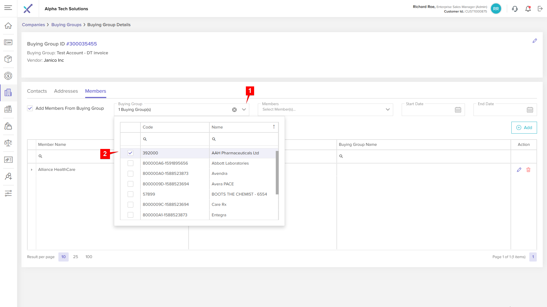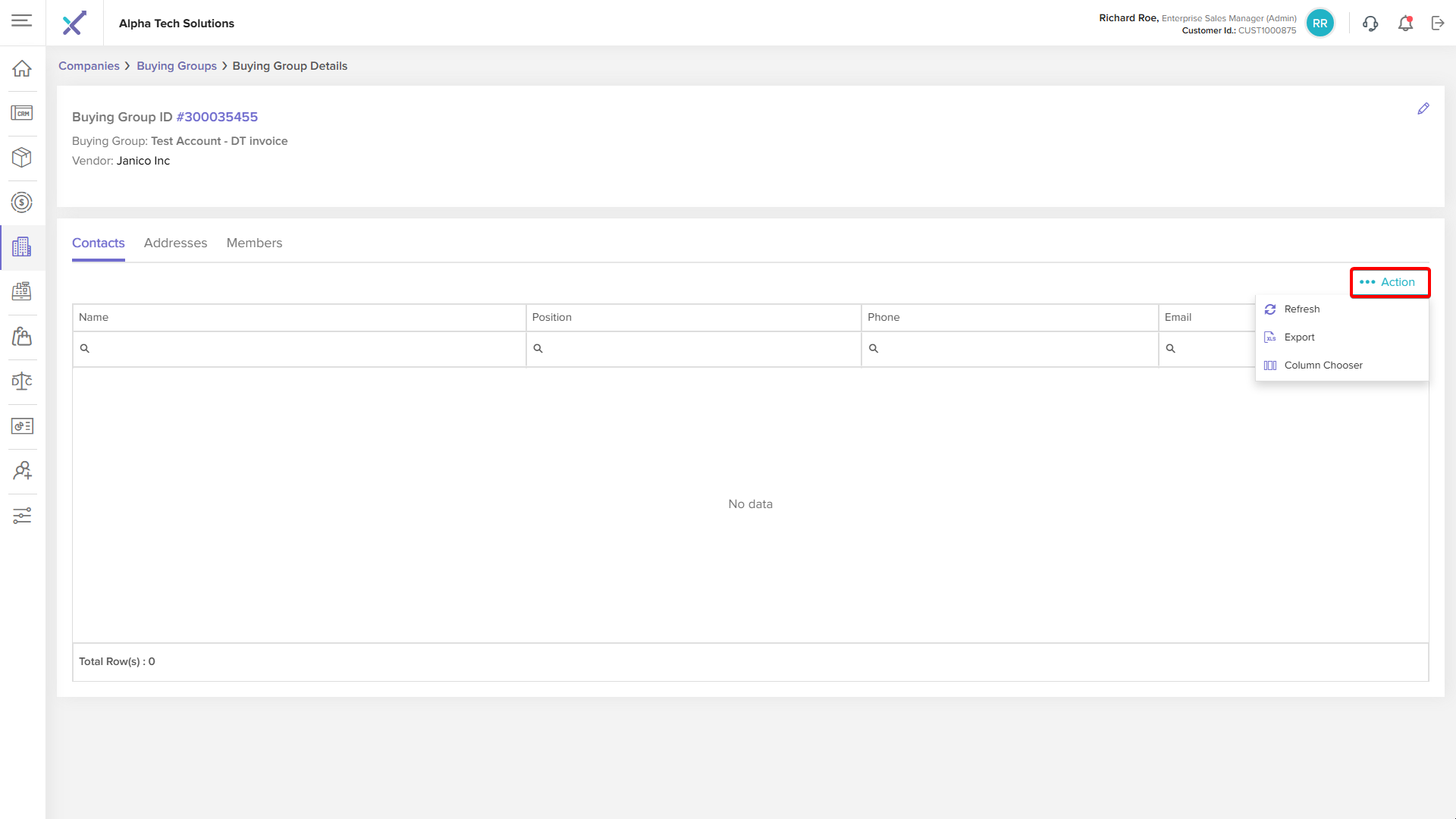 Click anywhere on a buying group row in the listing table to open the Buying Group Details page