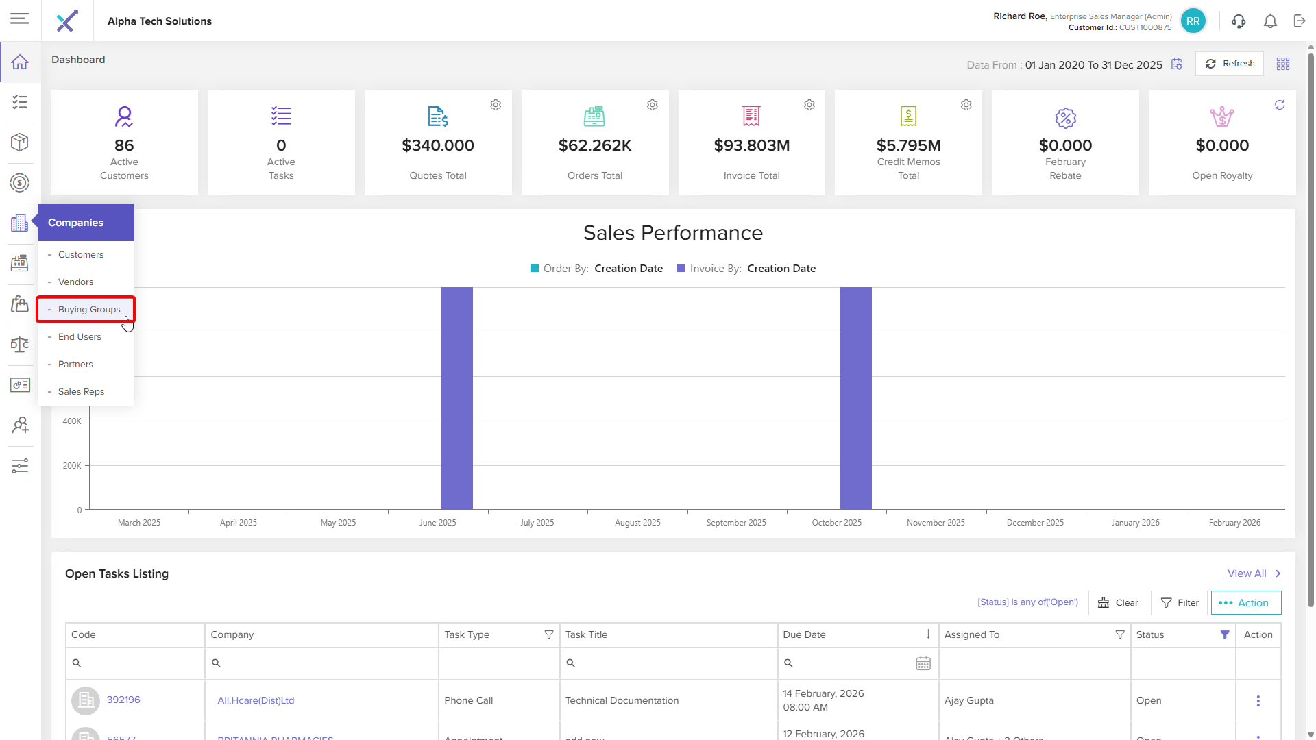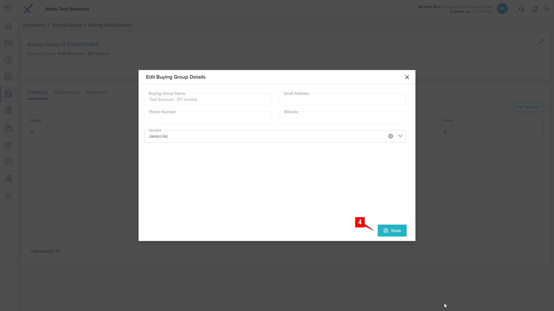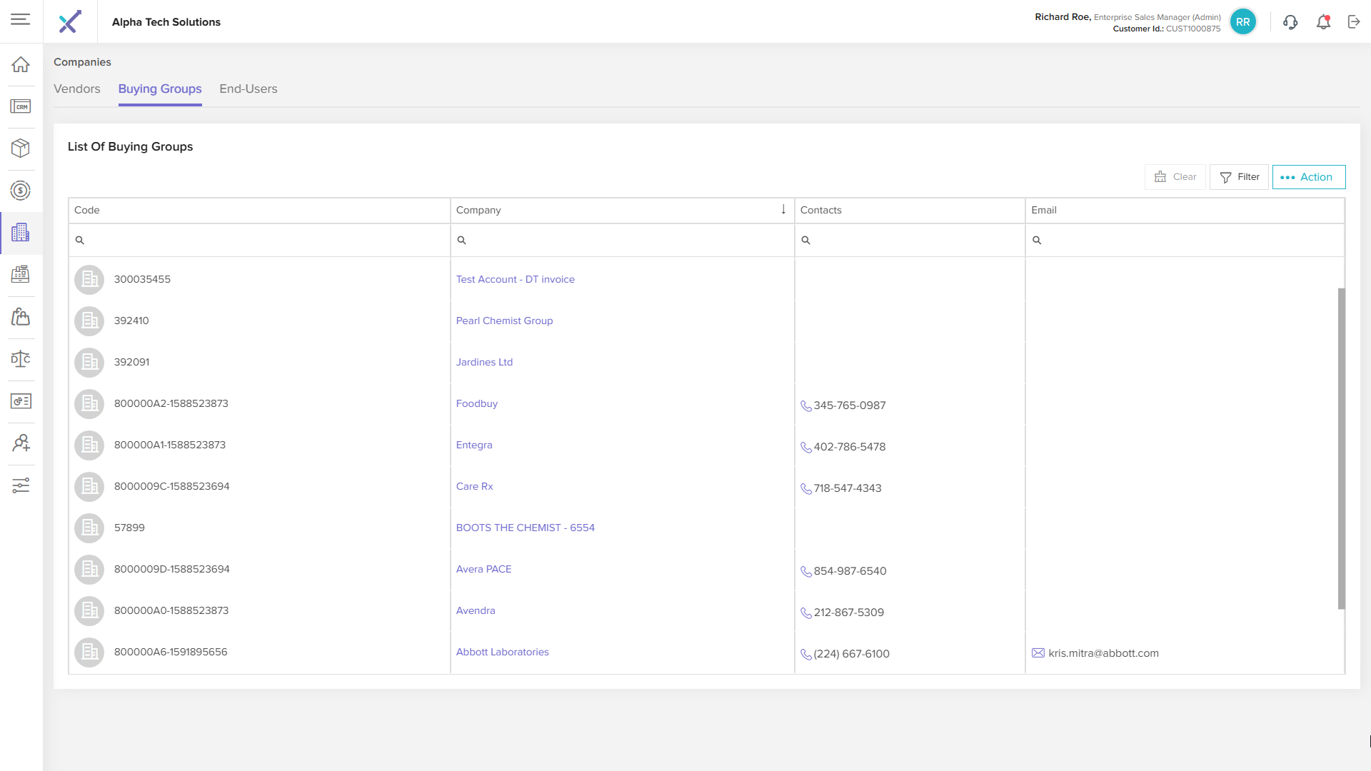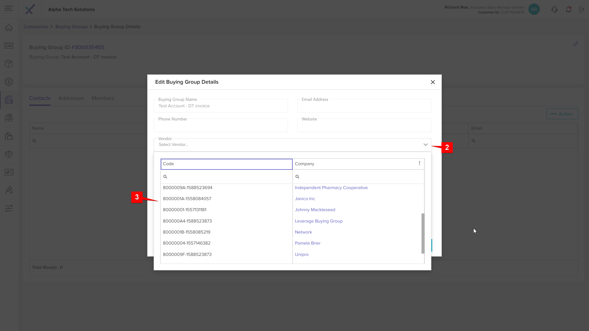 Click anywhere on a buying group row in the listing table to open the Buying Group Details page