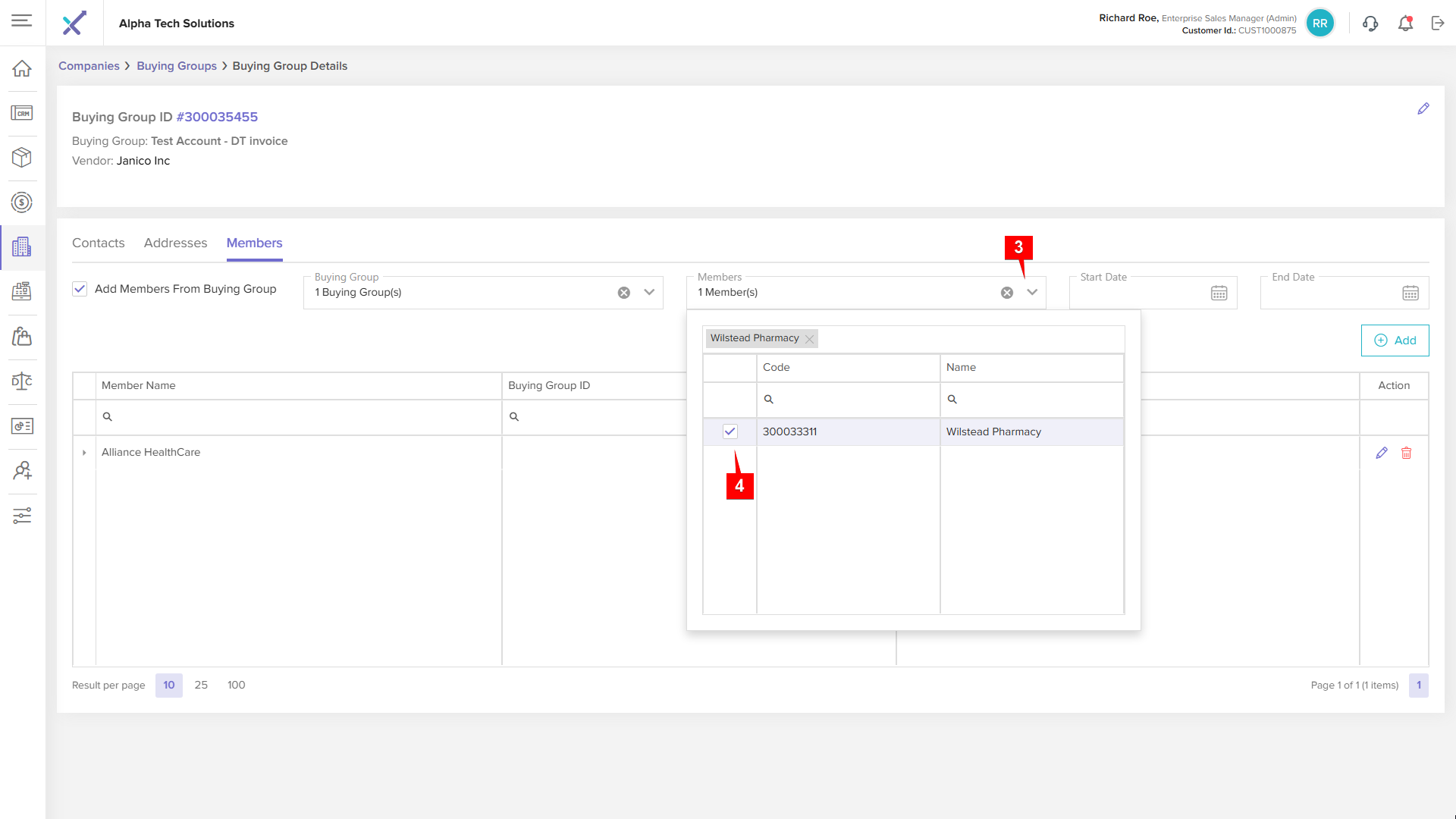 If select checkbox Add Members from Buying Group system will display another field Buying Group