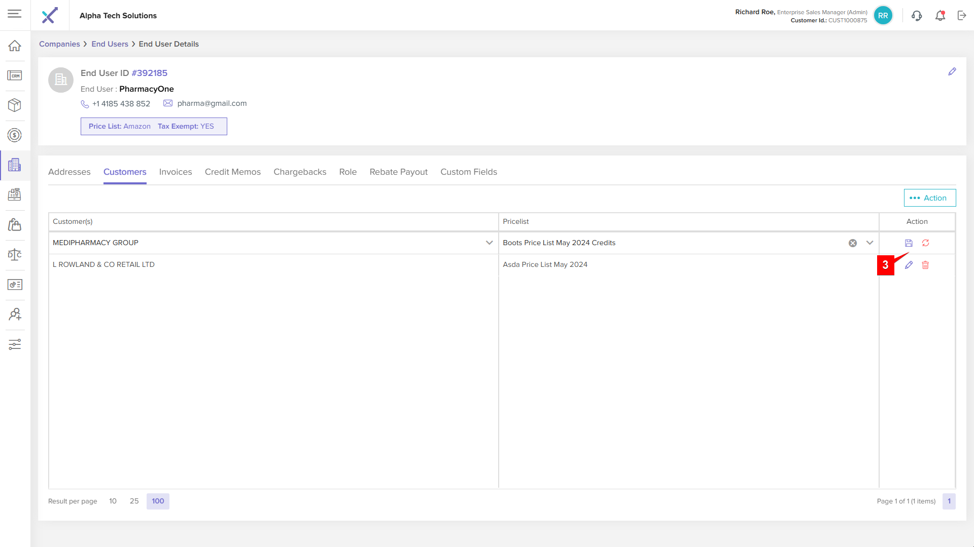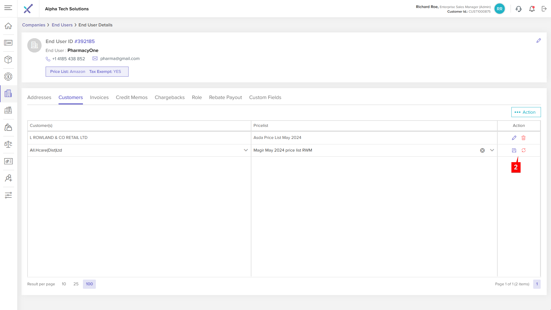 Step 3: Select Customer and Price List Click Save to add, or Refresh to remove the newly added row