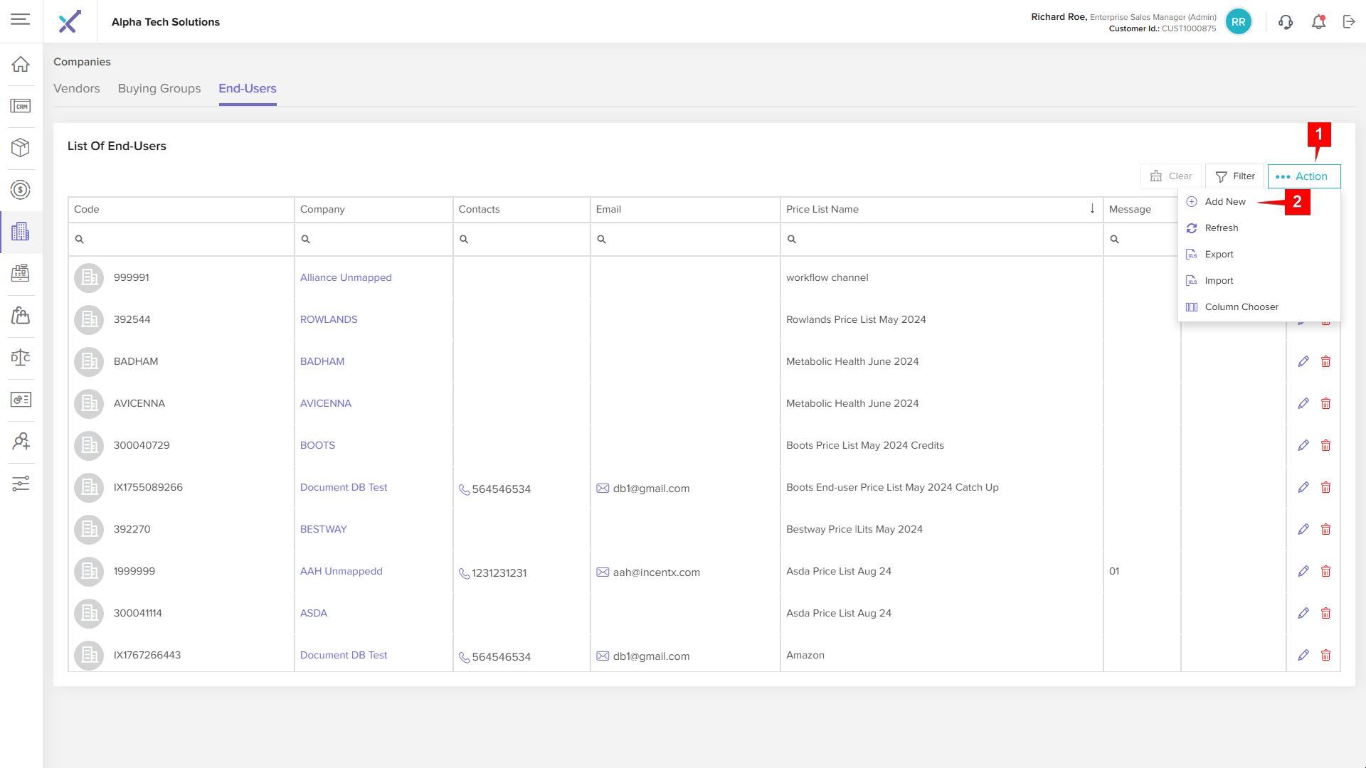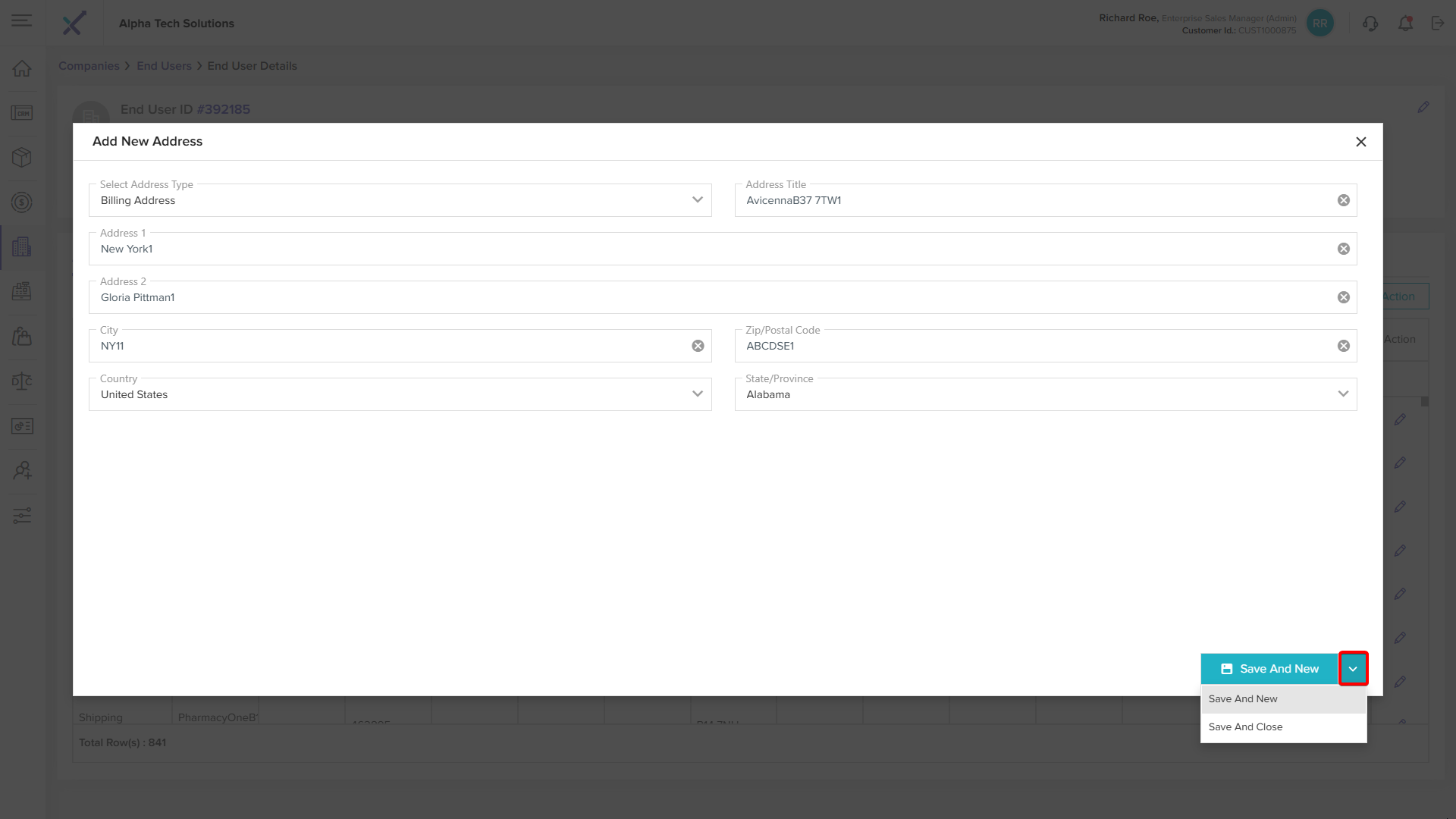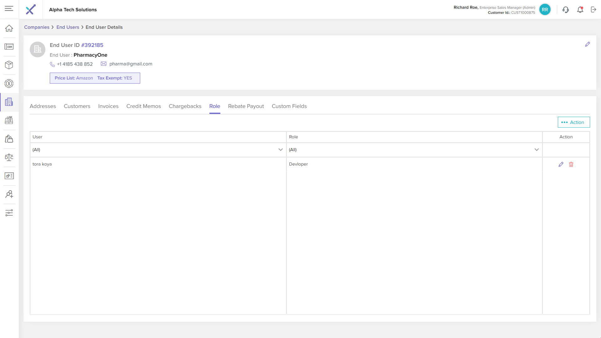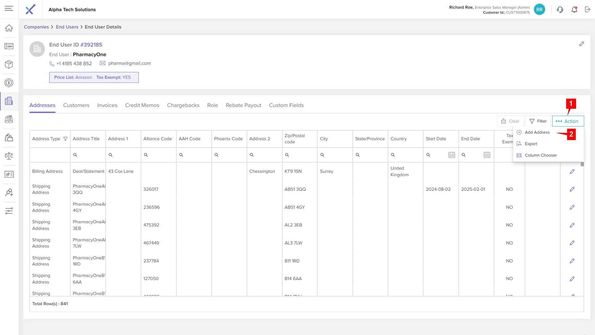 Customers Customer Listing Customer Creation Step 1: Click the Action button Step 2: Select Add New to open the customer creation form Note: When Tax Exempt is enabled, the Tax Code selection will be removed Step 3: Fill all the details as per fields ...