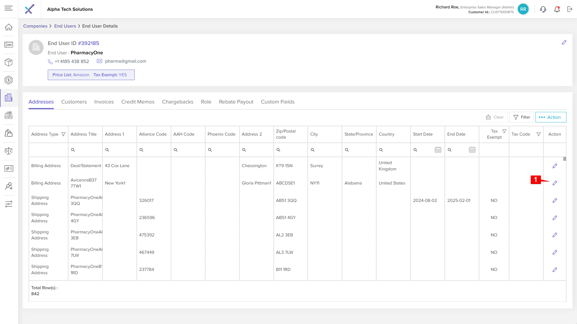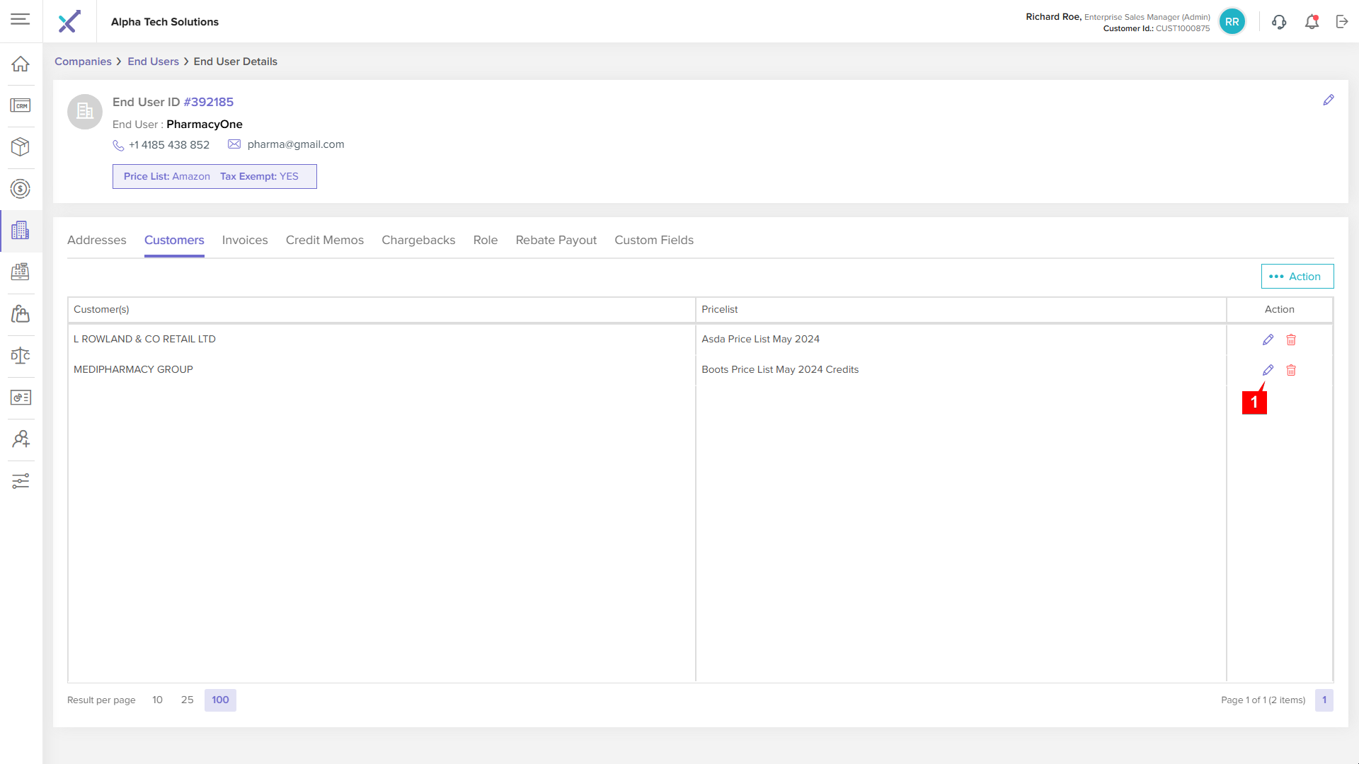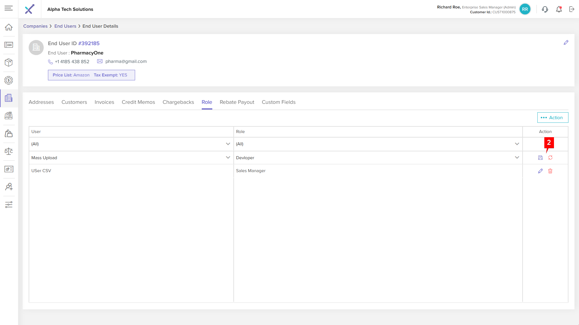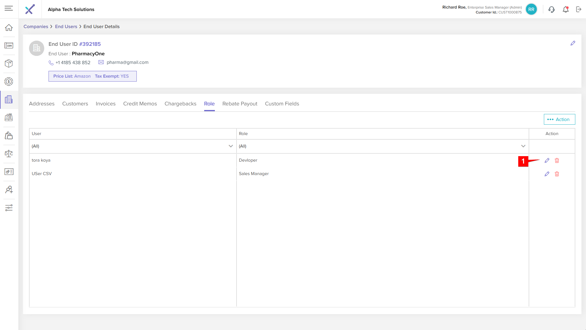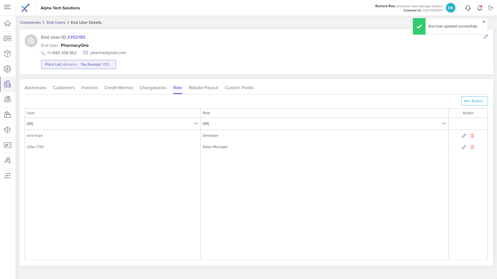 Customers Customer Listing Customer Creation Step 1: Click the Action button Step 2: Select Add New to open the customer creation form Note: When Tax Exempt is enabled, the Tax Code selection will be removed Step 3: Fill all the details as per fields ...