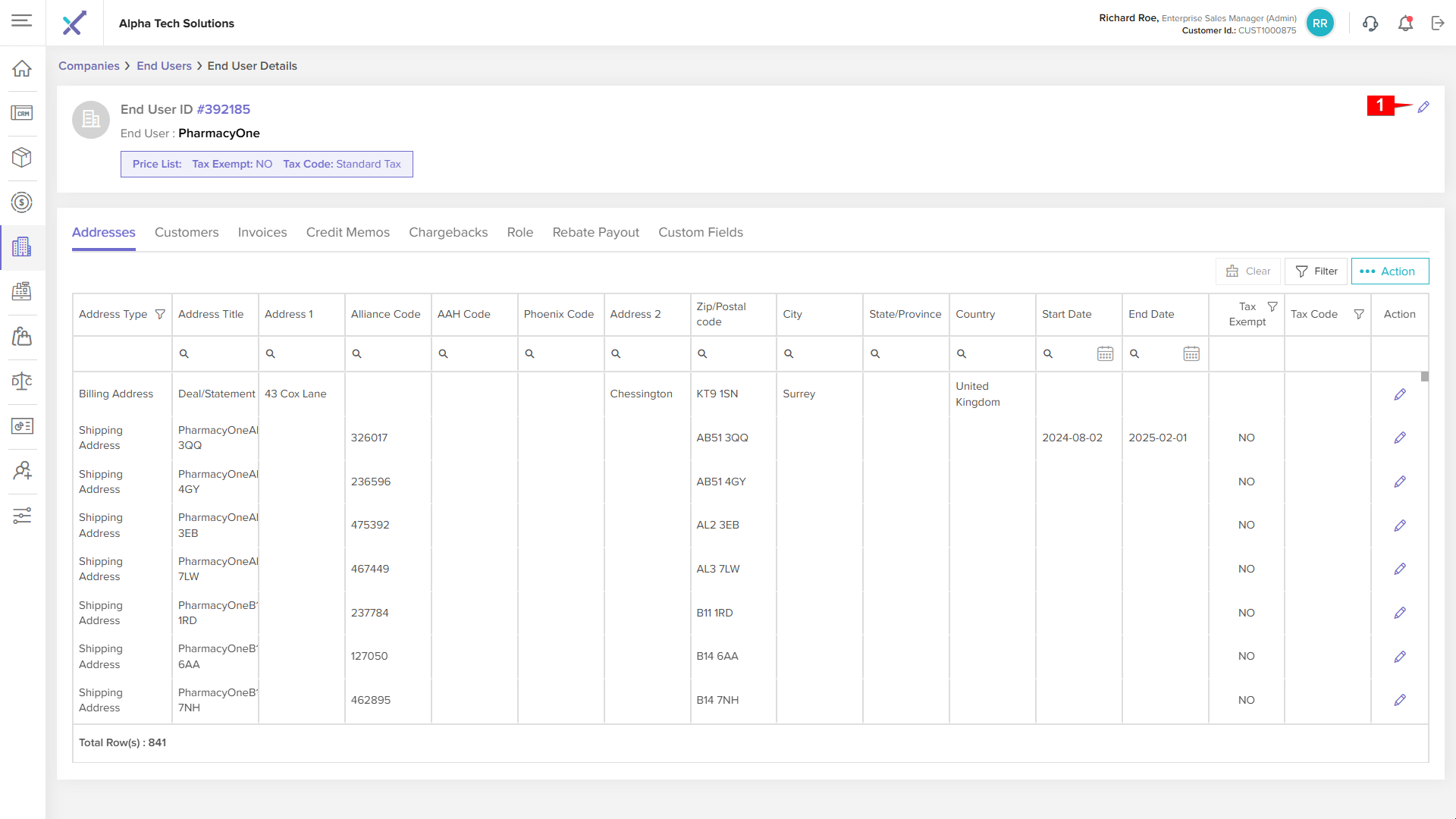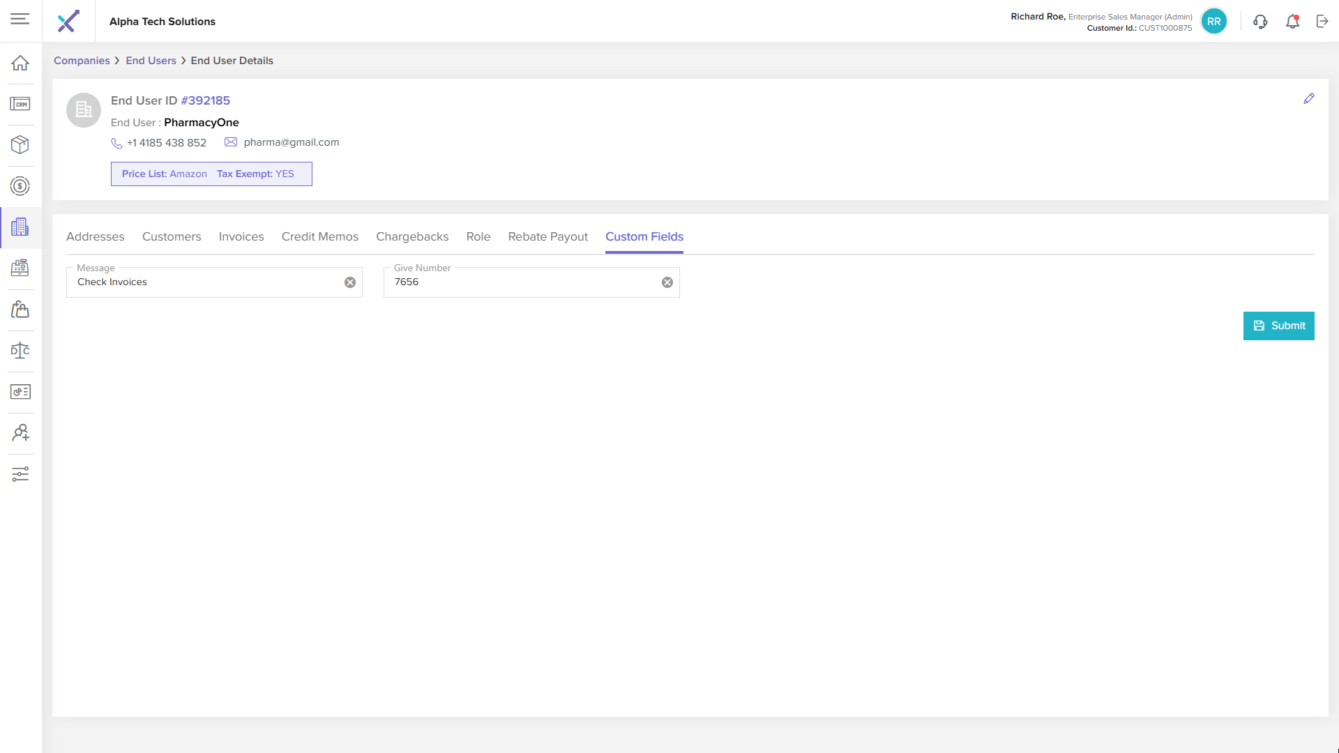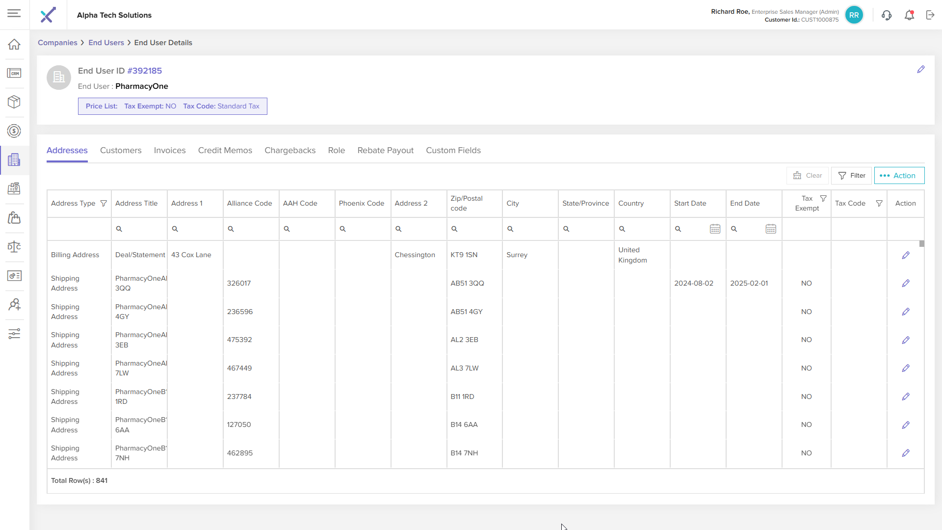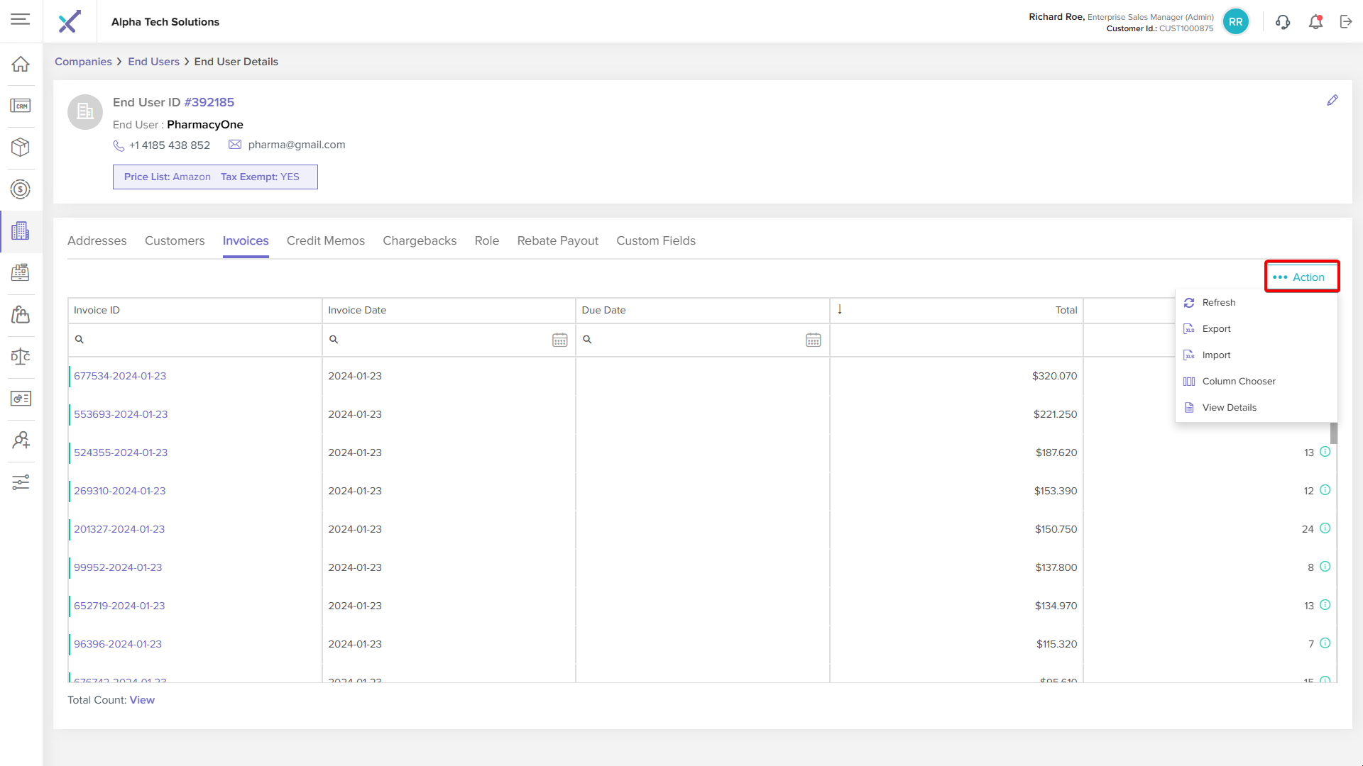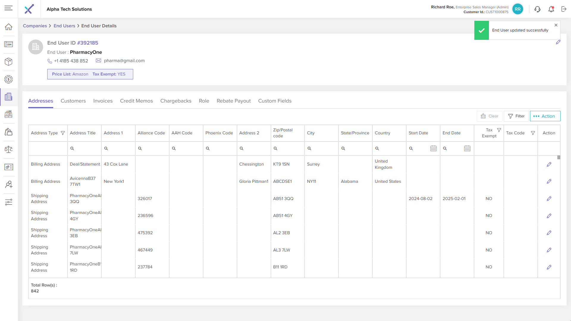 Customers Customer Listing Customer Creation Step 1: Click the Action button Step 2: Select Add New to open the customer creation form Note: When Tax Exempt is enabled, the Tax Code selection will be removed Step 3: Fill all the details as per fields ...