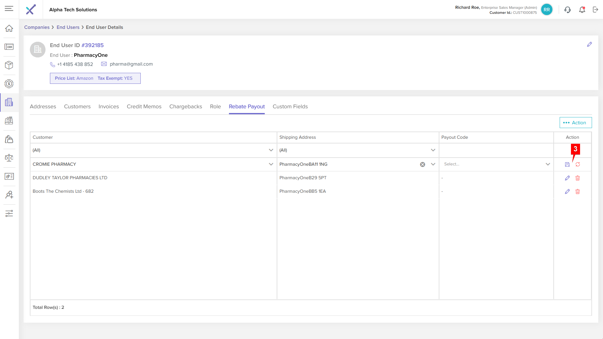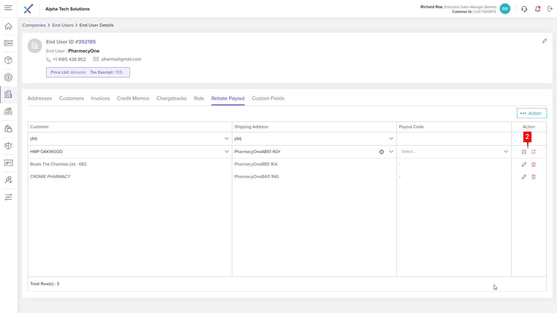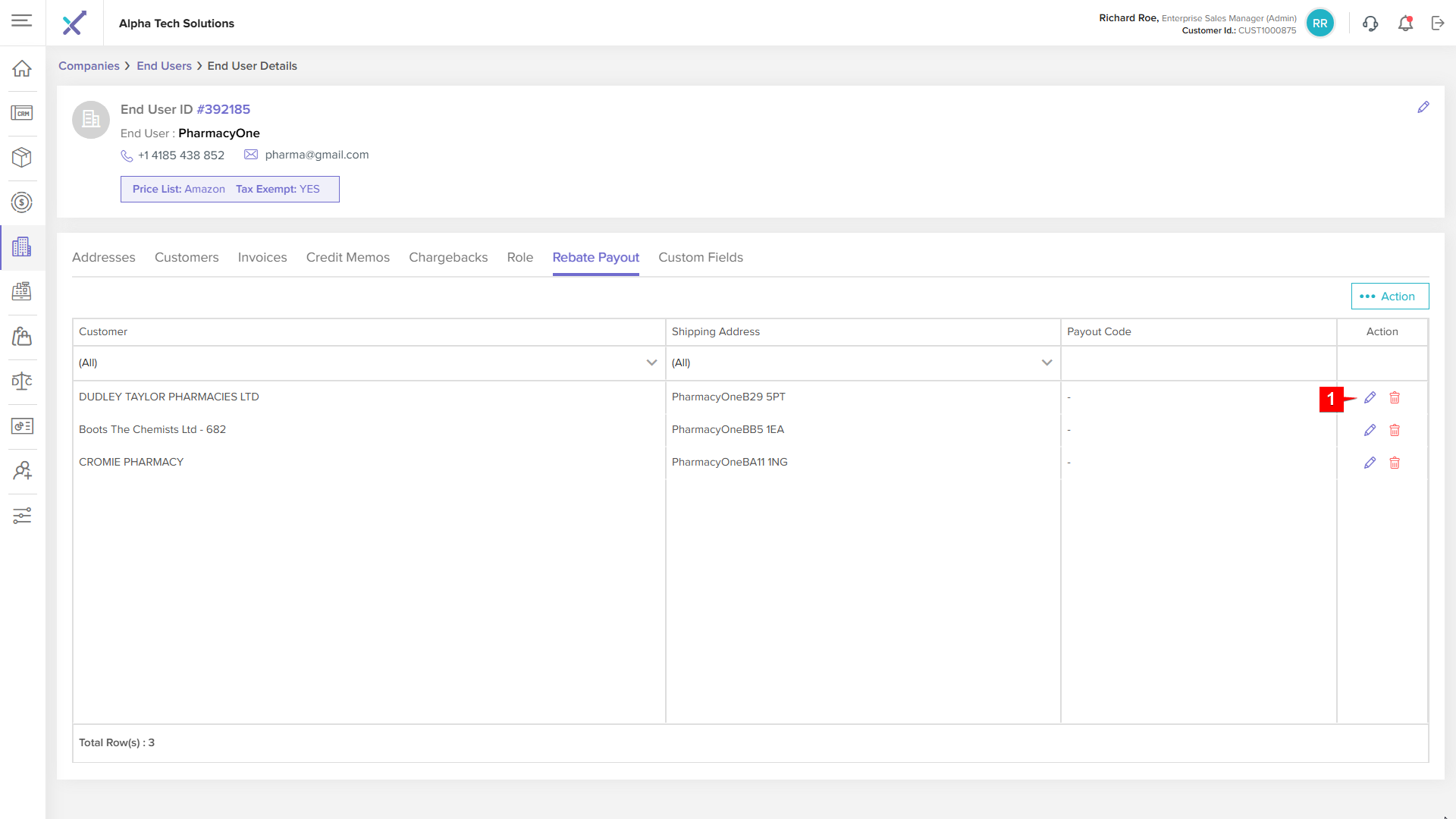 Step 3: Select Customer, Shipping Address and PayOut Code Click Save to add, or Refresh to remove the newly added row