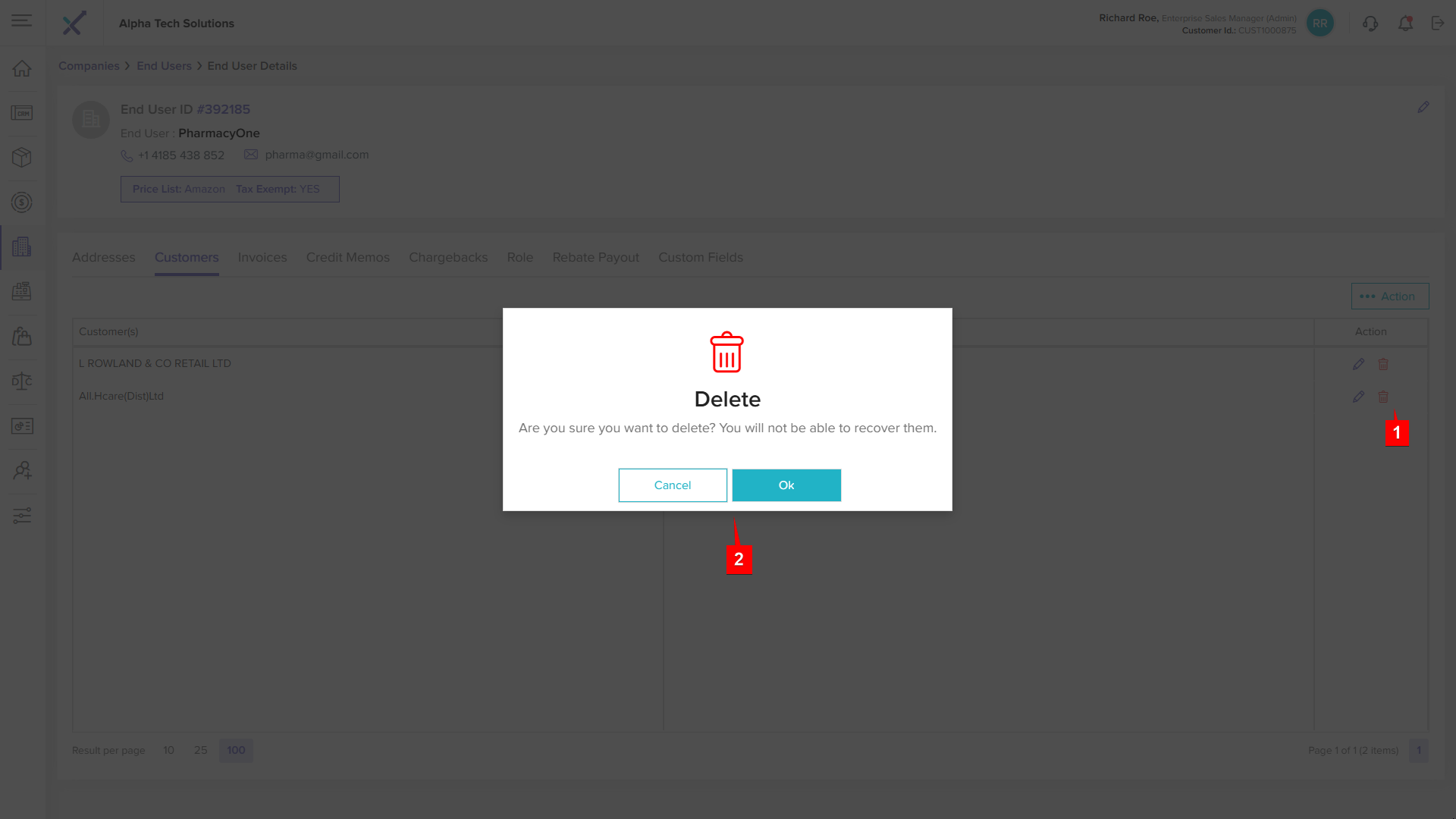 Step 2: Click OK to confirm deletion or cancel to close the popup without deleting.