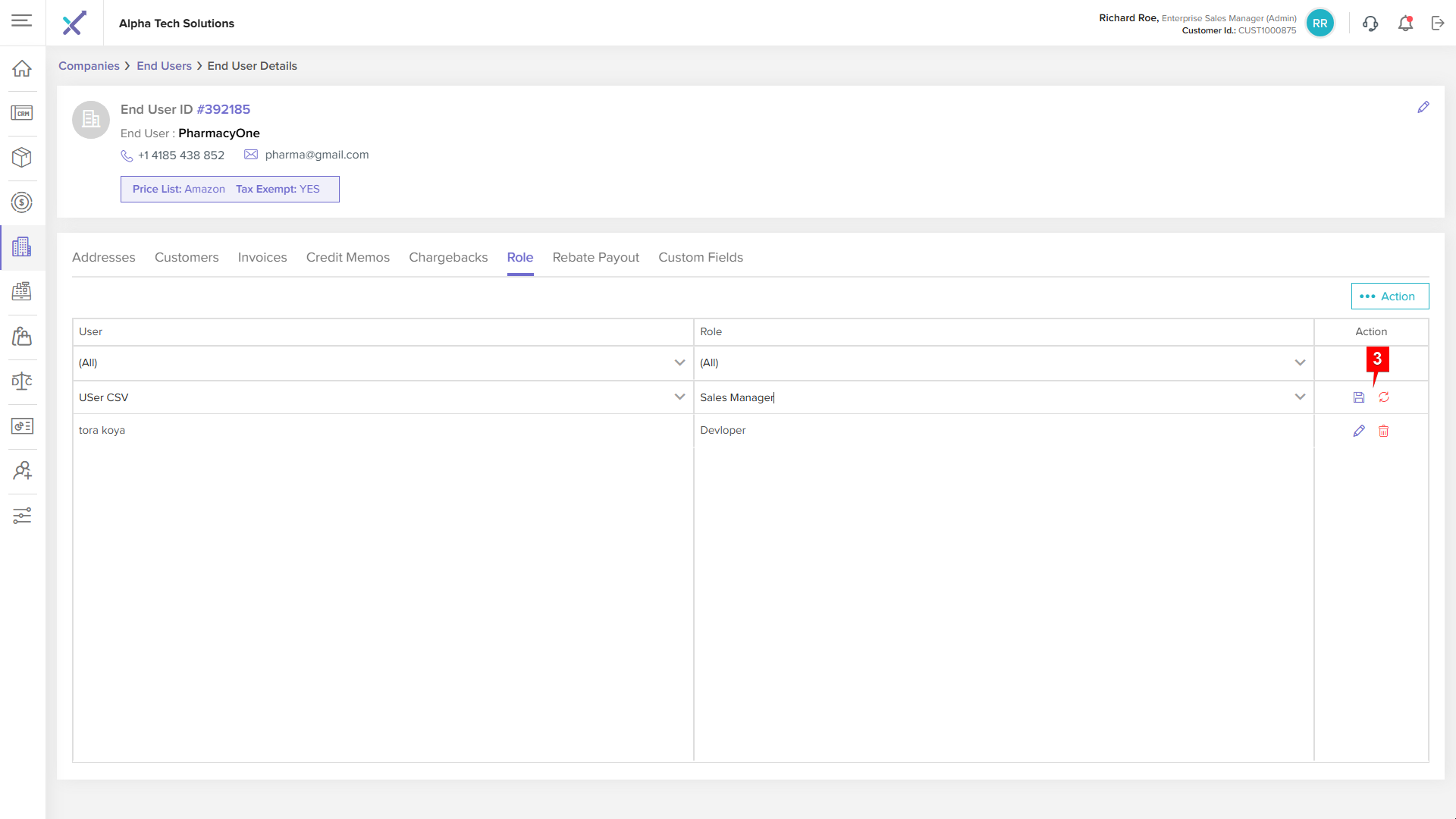 Step 2: Select User and Role for change Click Save to update, or Refresh to disable edit without save changes