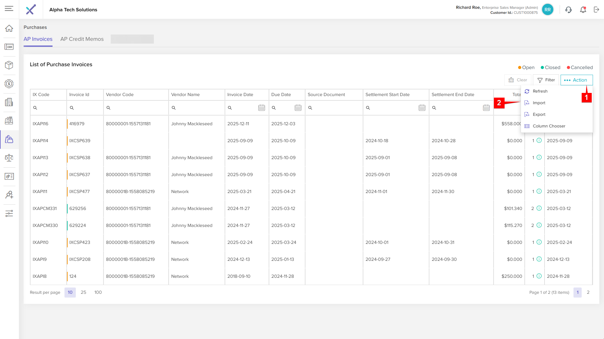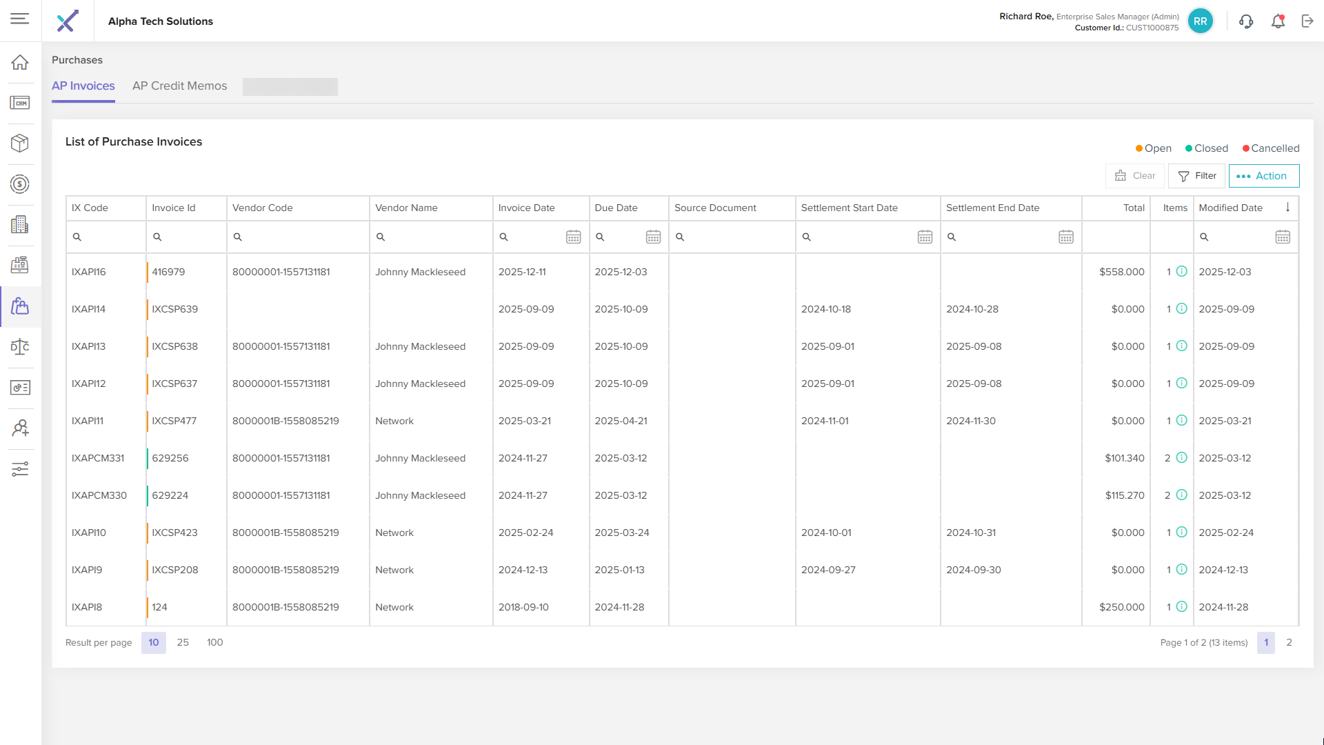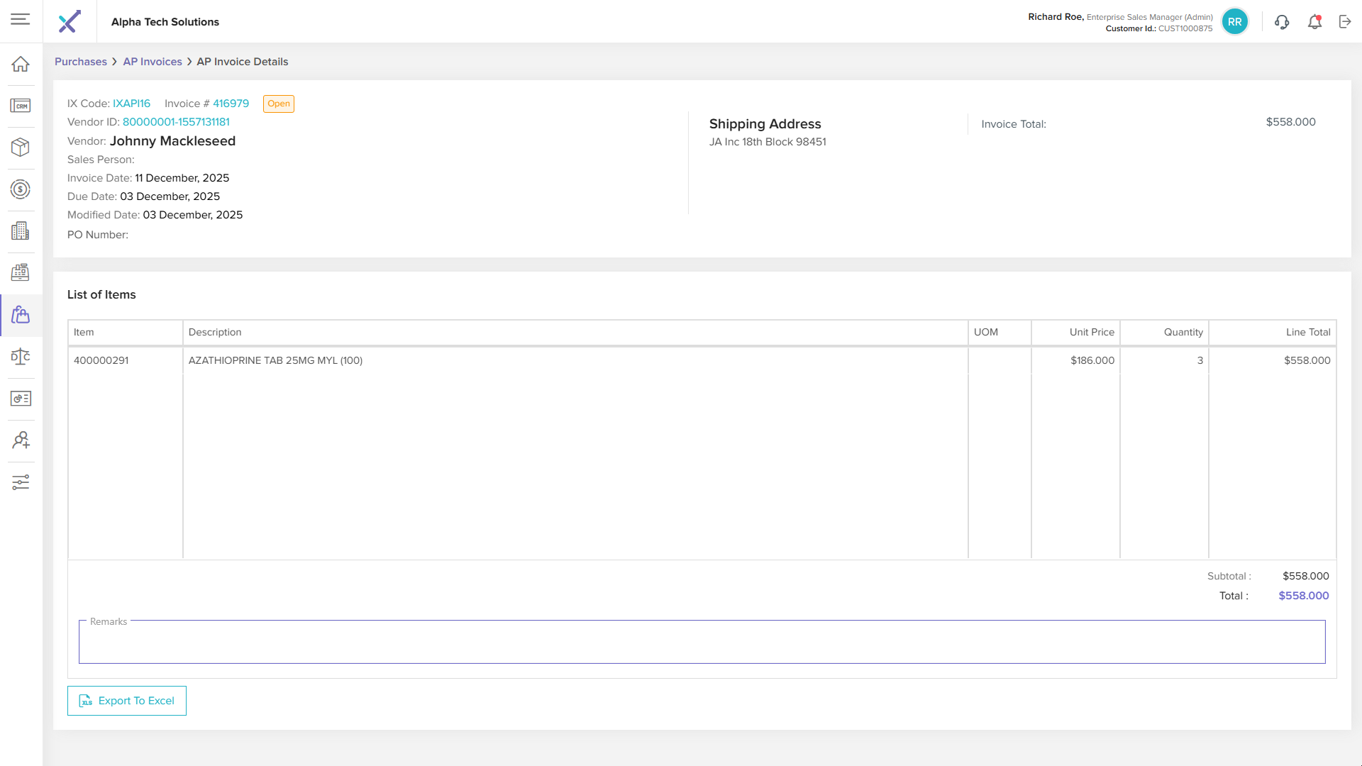 Click anywhere on an invoice row in the listing table to open the AP Invoice Details page