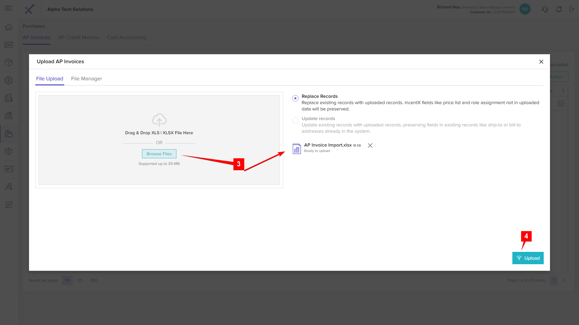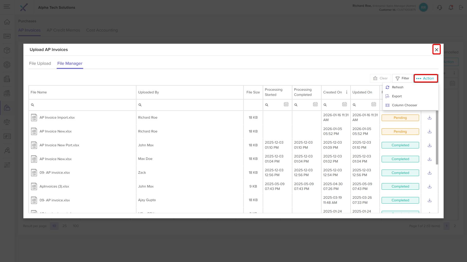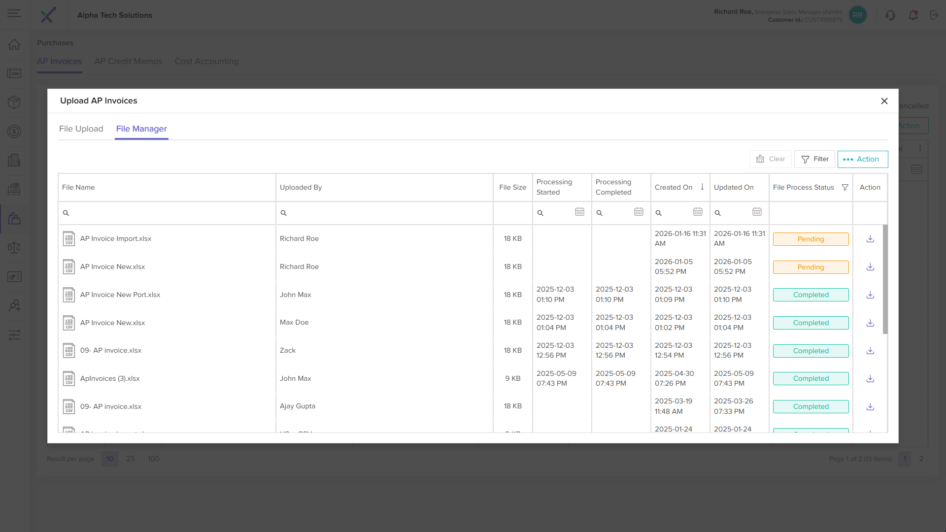 Once the cron cycle completes and the file status changes to Completed, the Import tab will appear in the corresponding ap invoice detail page