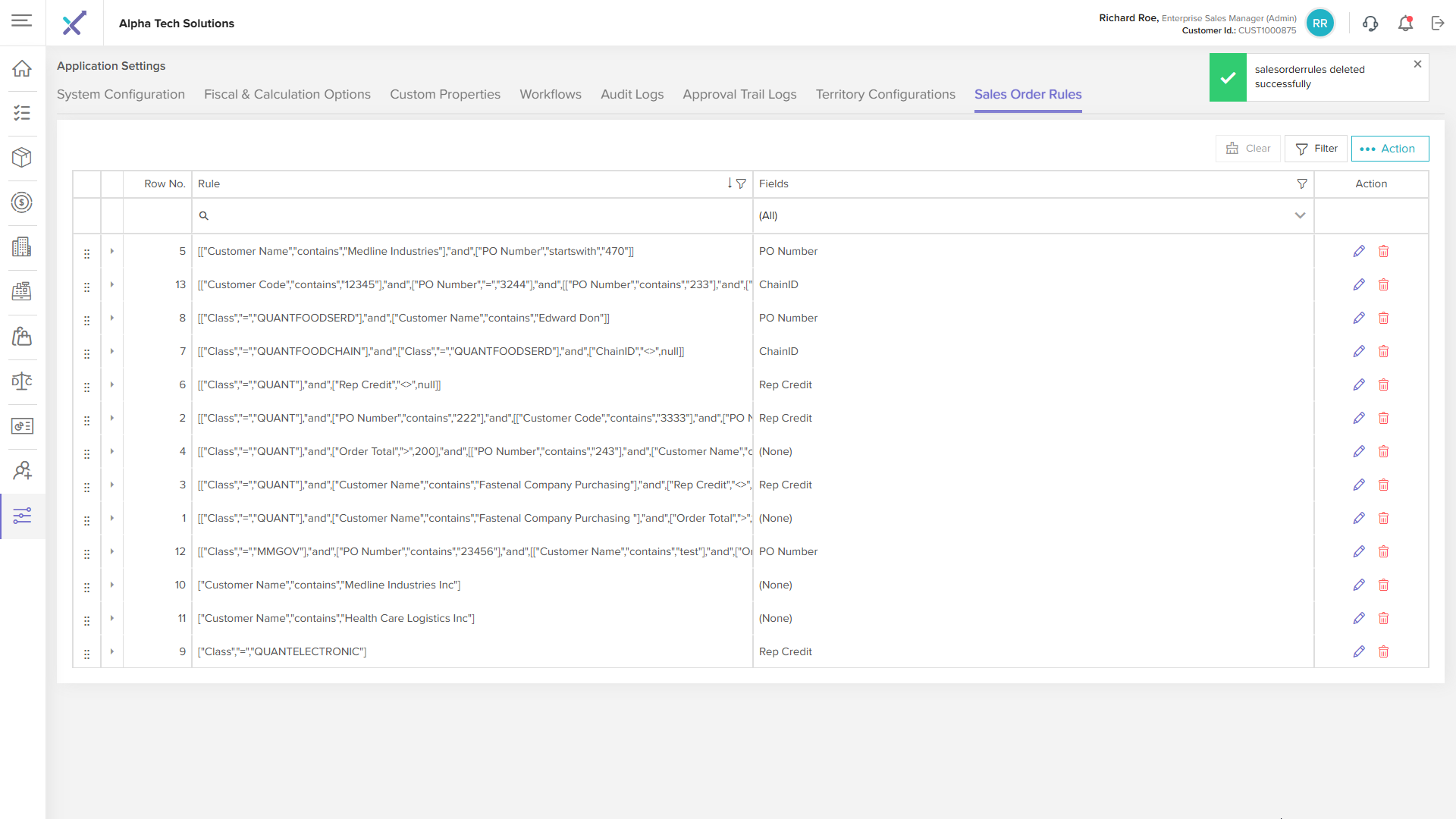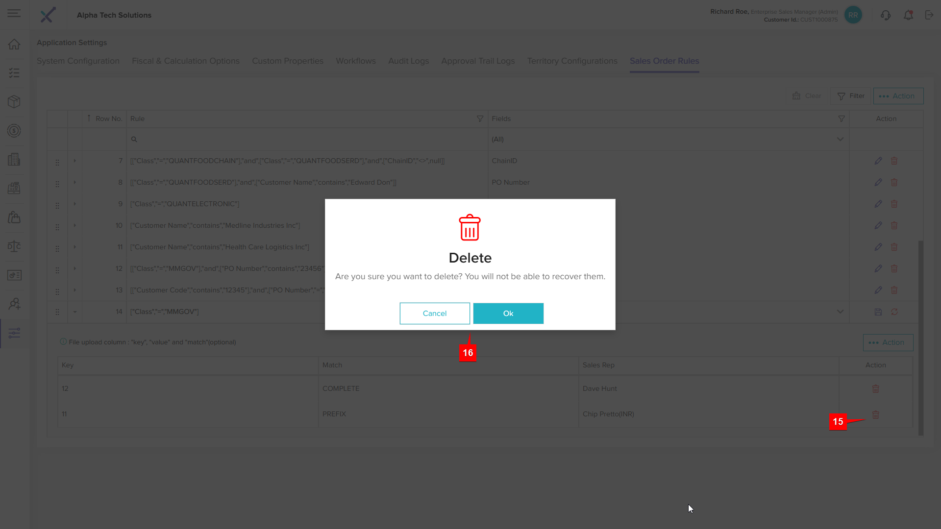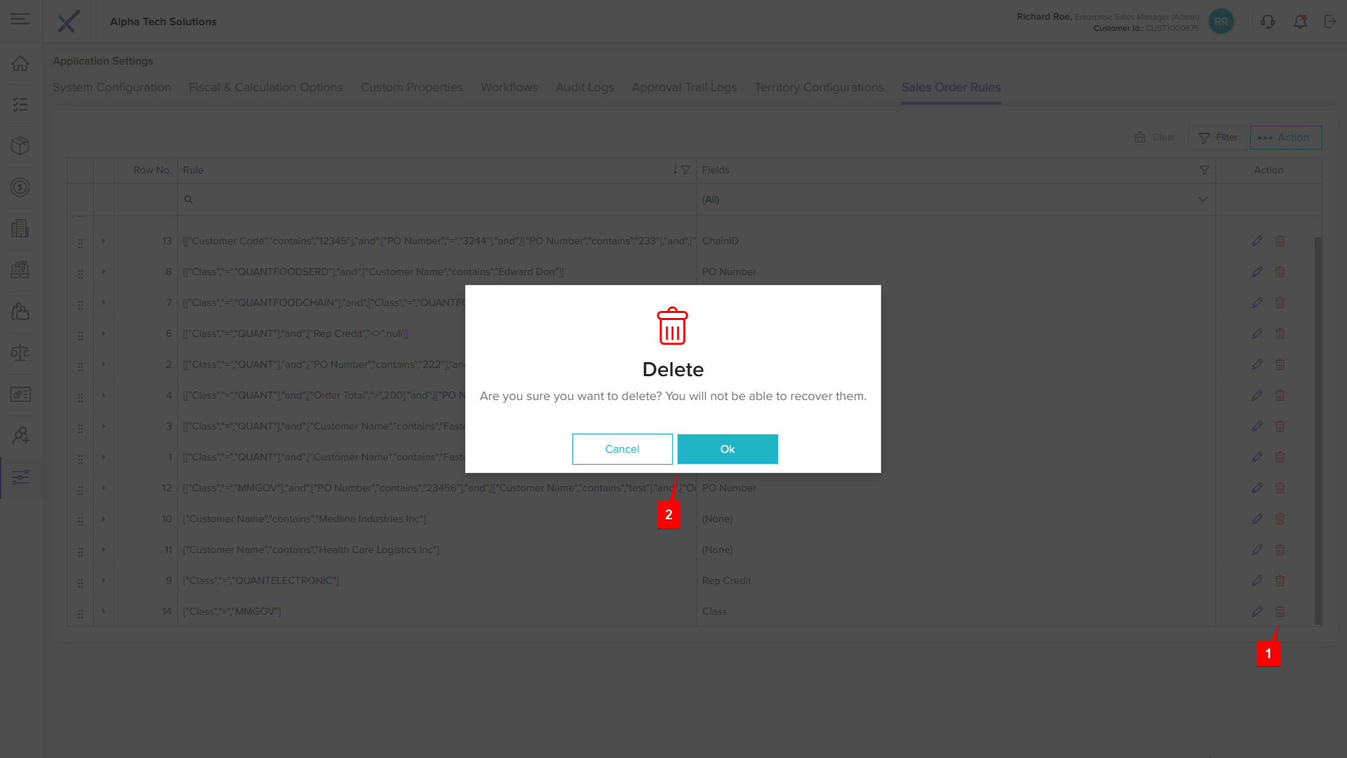 Step 1: Click the Delete icon next to the sales order rule