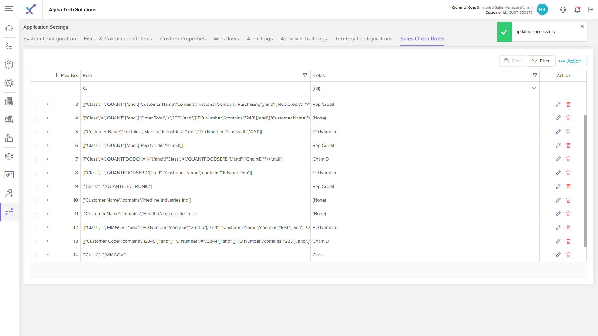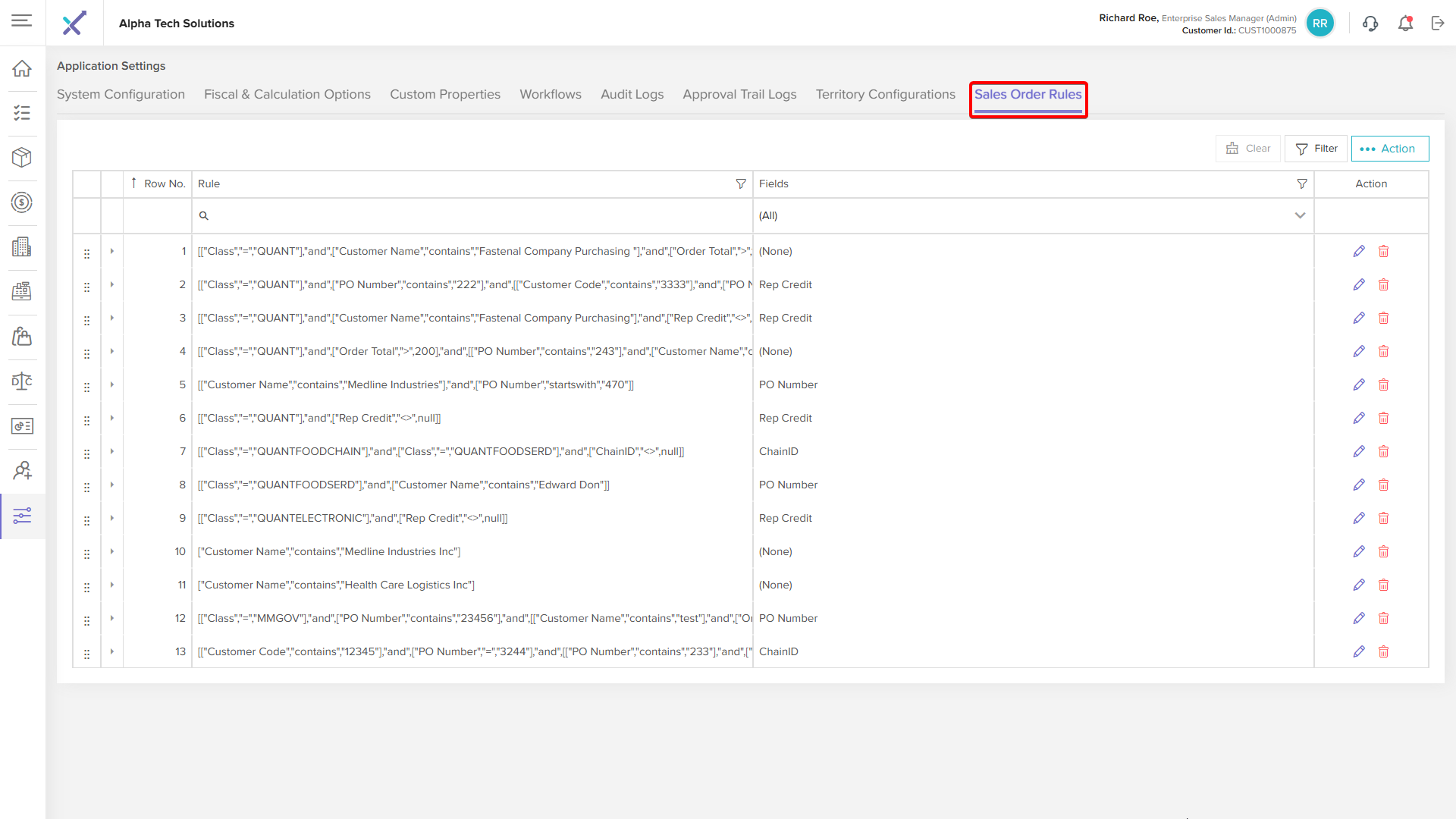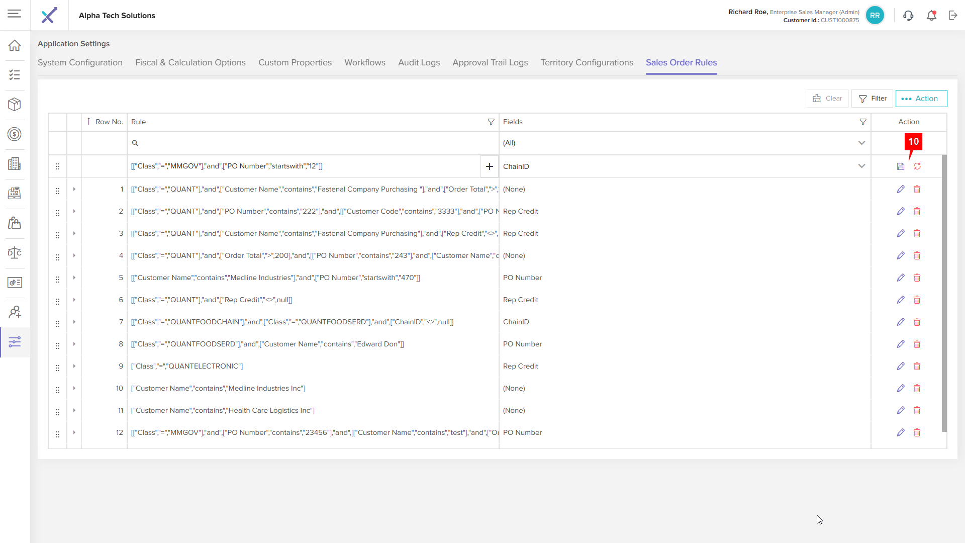 Step 1: Click the Delete icon next to the sales order rule