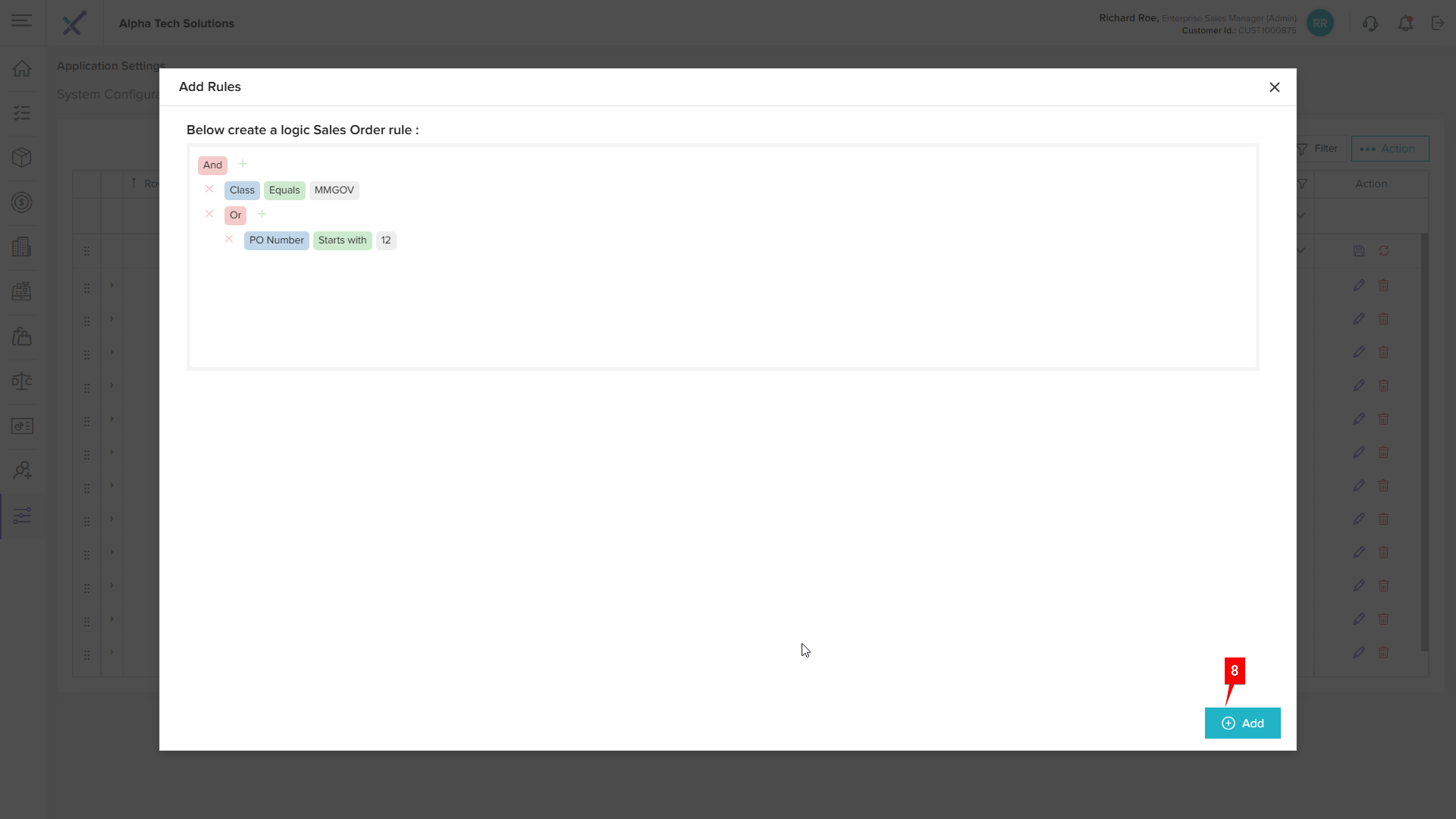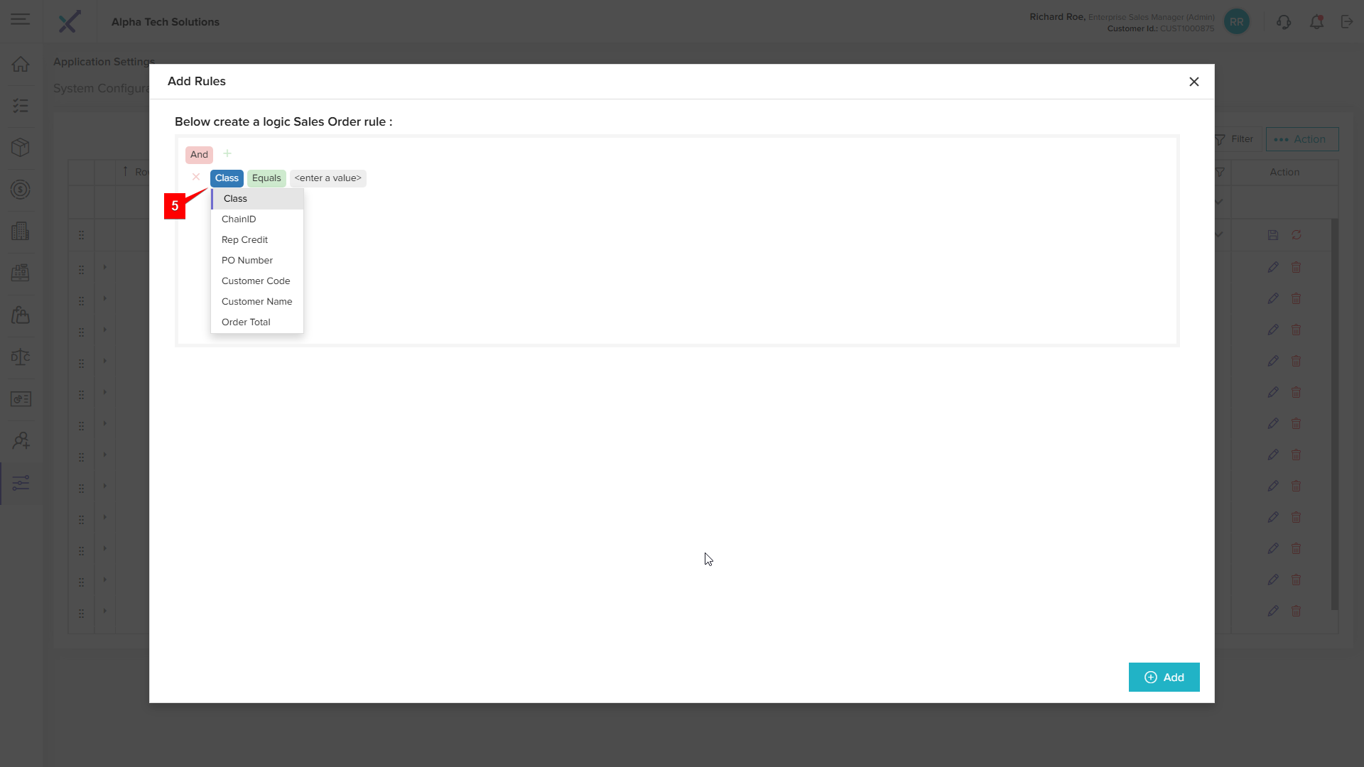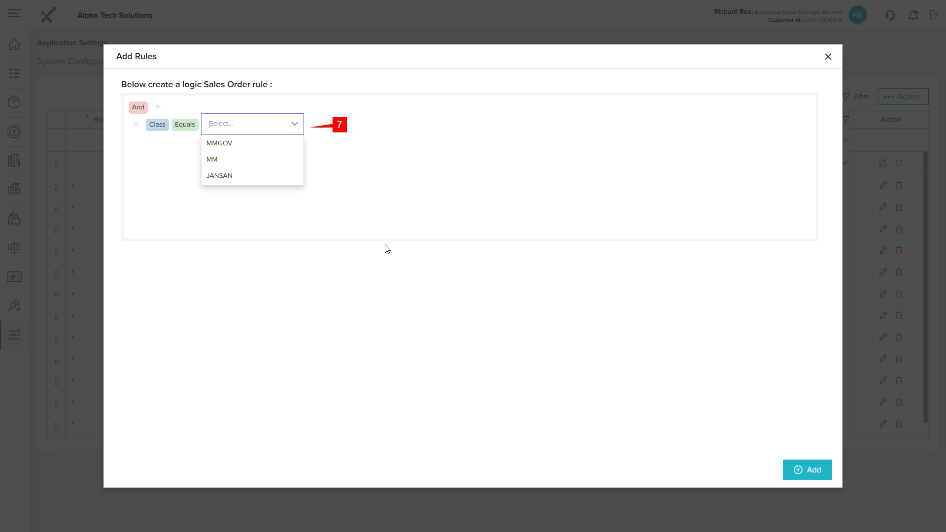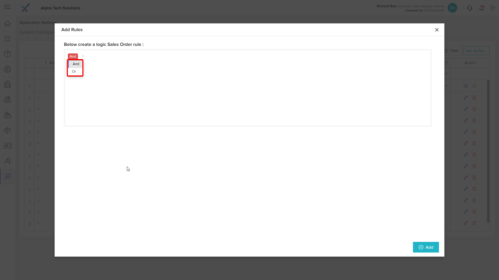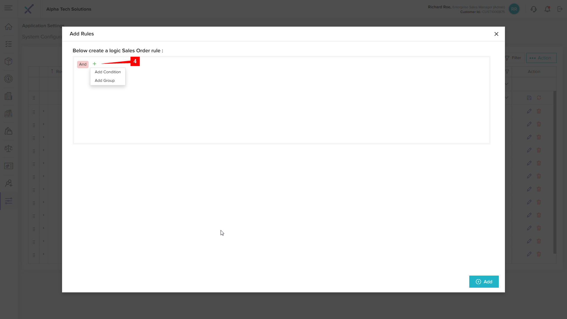 Step 3: Click the + (Add) Icon to open the Add Rules Pop up