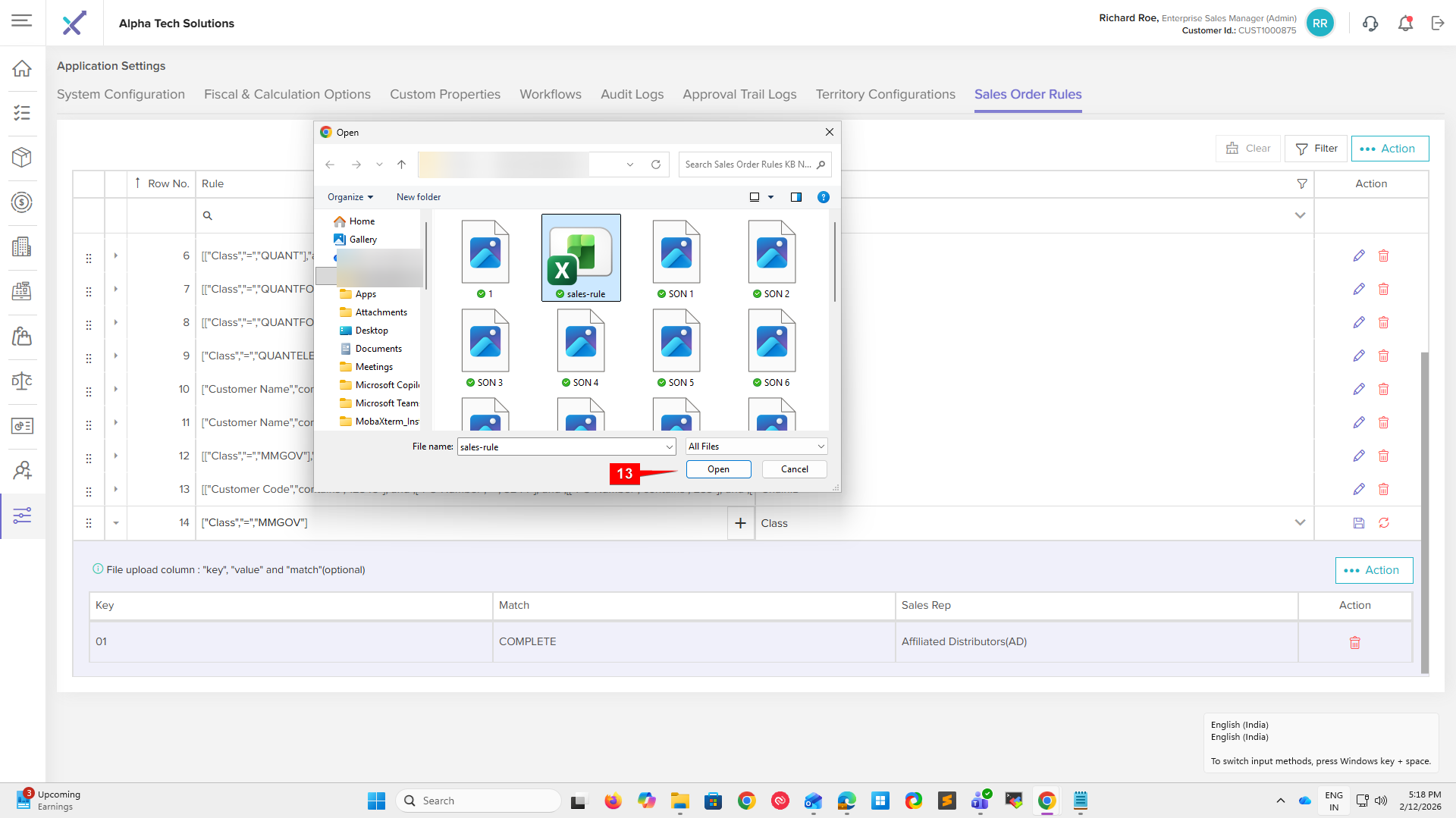 After click yes as per step14 system will display sales rep as uploaded file