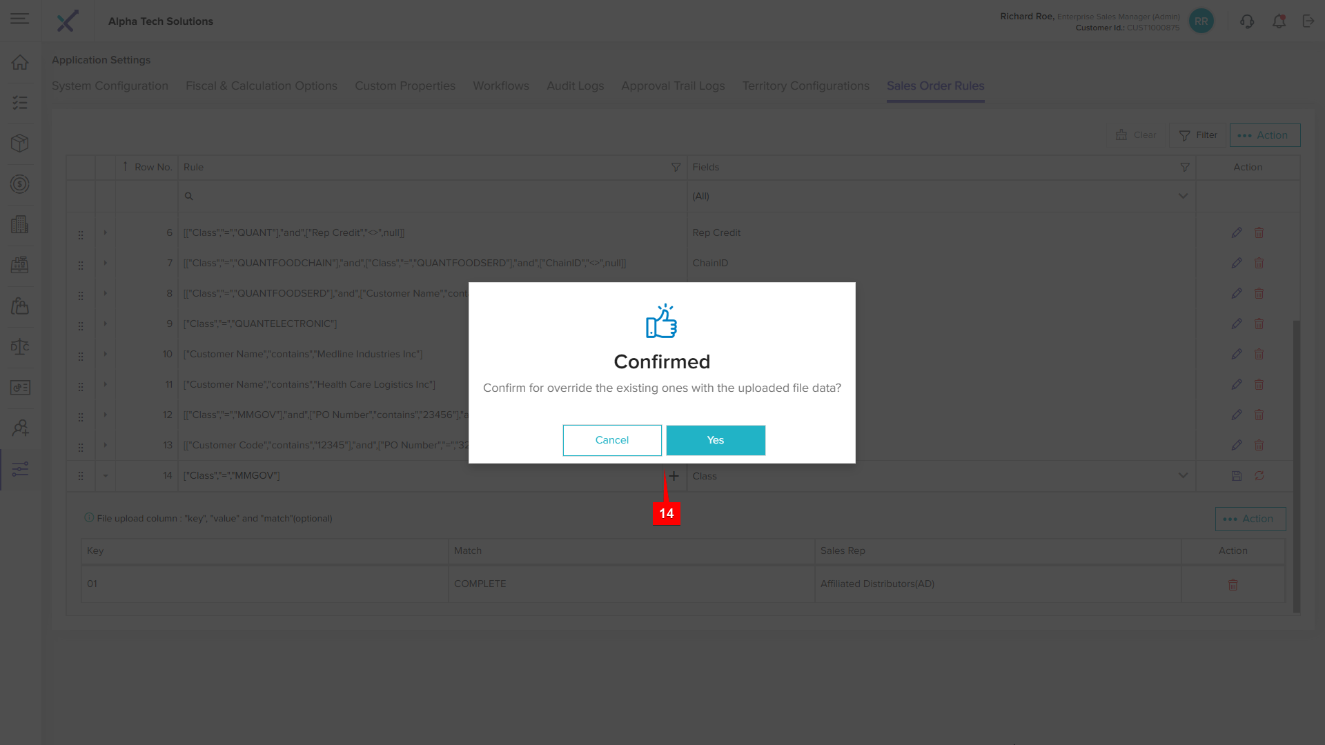 Step 14: Click Yes for Override existing sales rep list and upload new as per file OR Cancel for not upload file