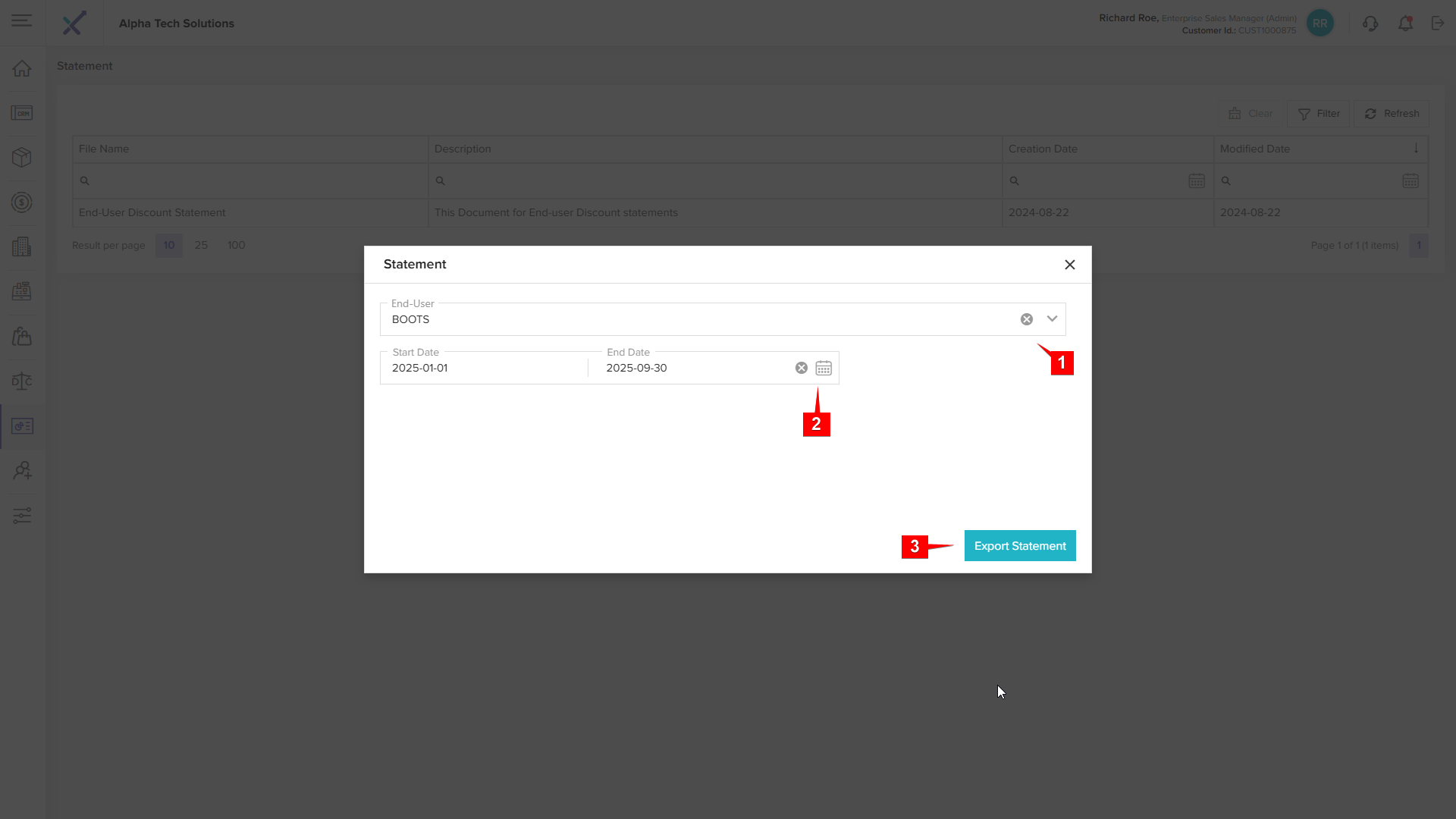Step 3: Click Export Statement